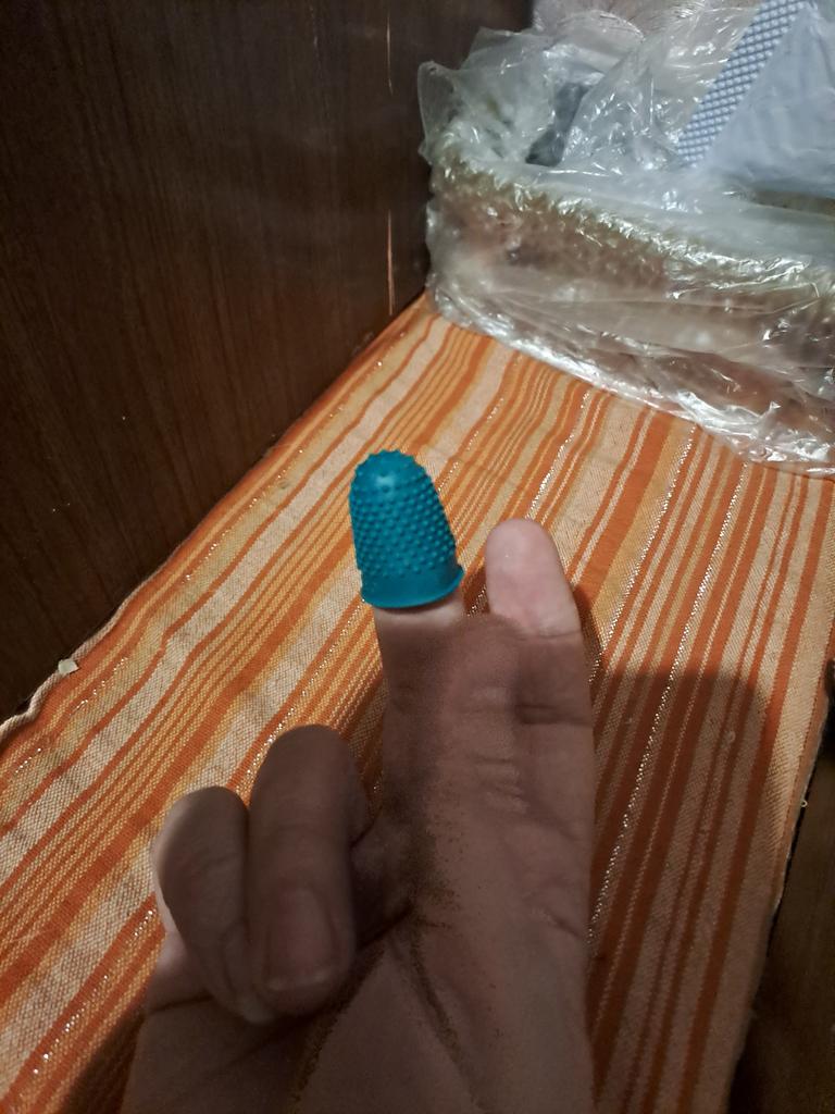 I bought thimbles for injured fingers, since sometimes I need to bandage and wet my finger when cooking. And the silicone fingertip, I hope, will help in this matter.