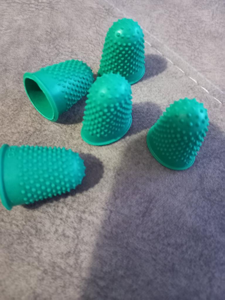 Rubber fingertips. Use for papers. Very comfortably