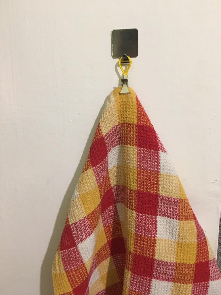 Kitchen towels hang on such little hooks on the rail very well ๐