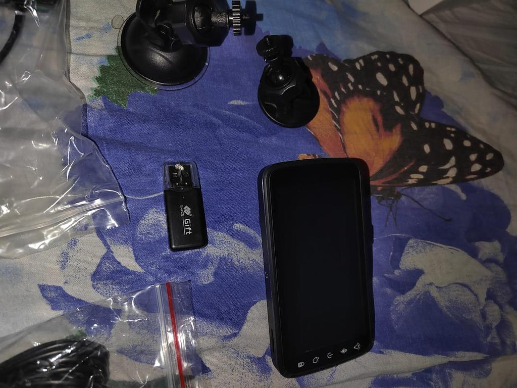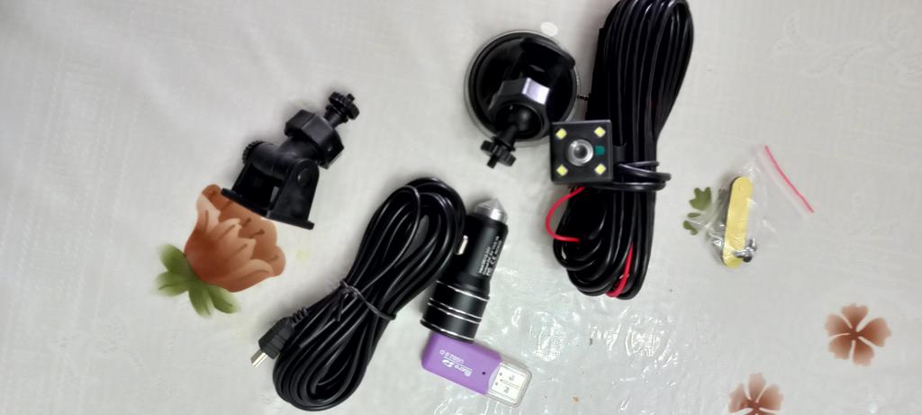 The goods arrived in a little less than a month. Everything is included in the kit, I didn’t like the strong scratches on the screen film, also the connector for a flash card, there are also scratches, it feels like the car recorder has already been used