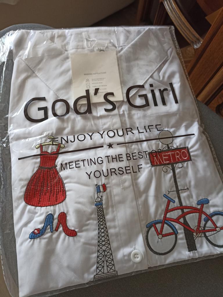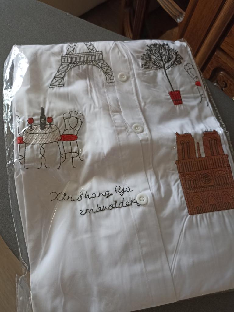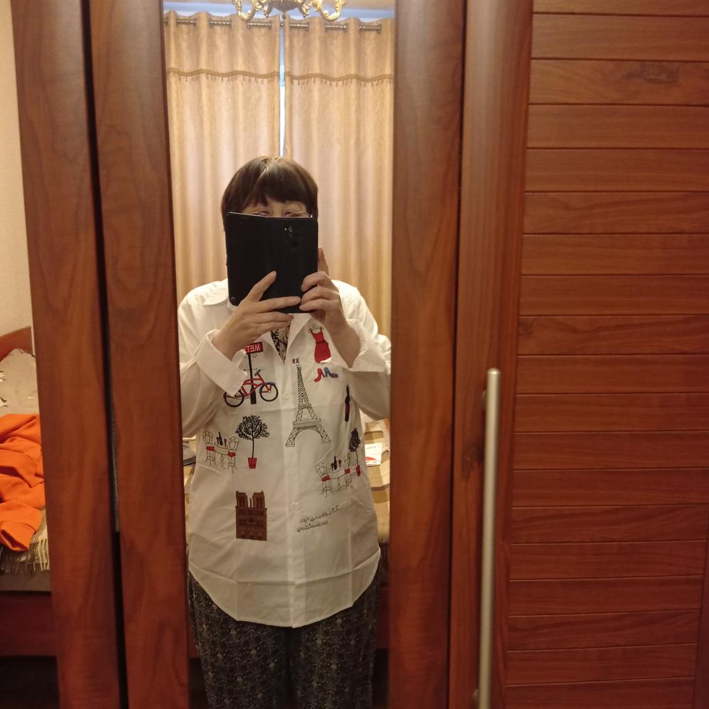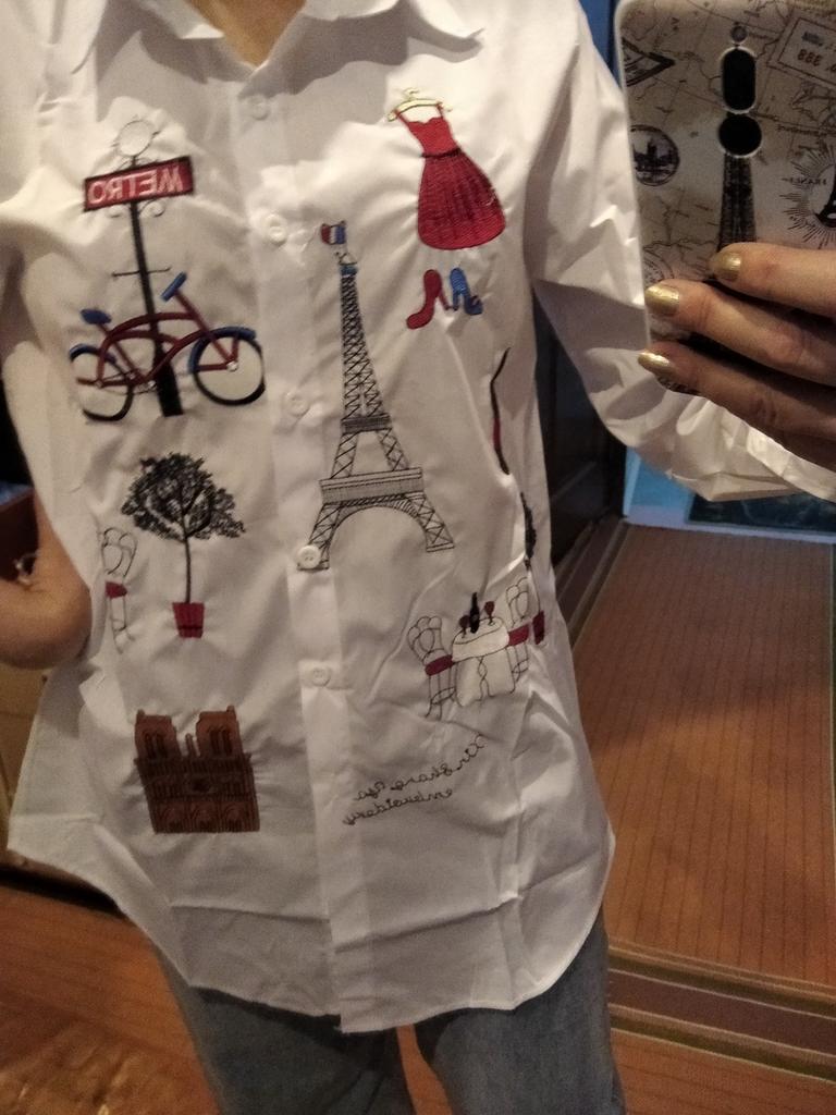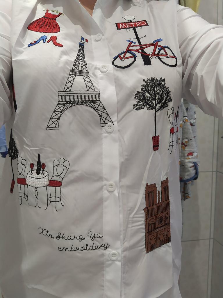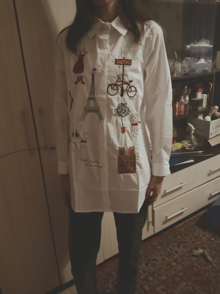 A chic snow-white shirt, there is embroidery on the front, not appliqué. Sewn very neatly, all the seams are even, so there’s nothing to complain about. I recommend this to anyone who likes loose shirts. Manufacturer 5+