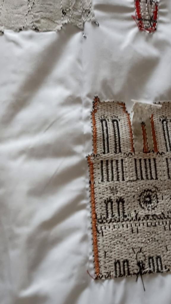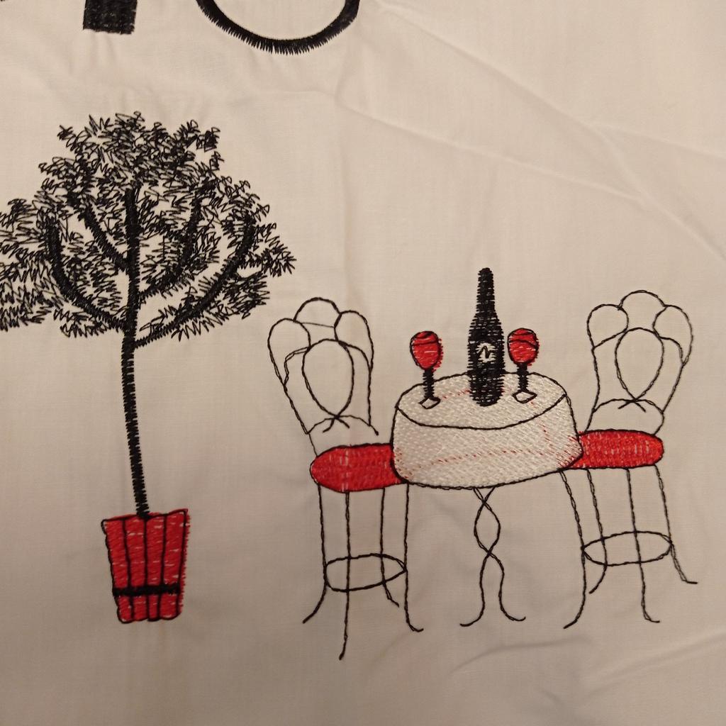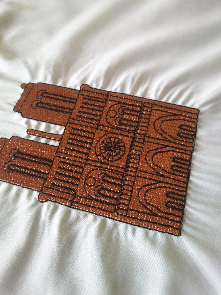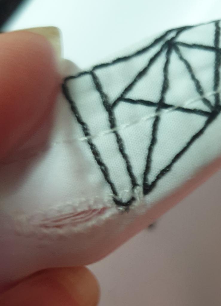 Perfectly sewn as in the photo, but the embroidery pulls the fabric together, it's not very beautiful.