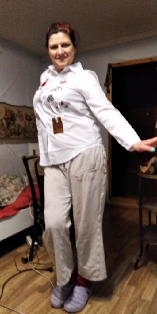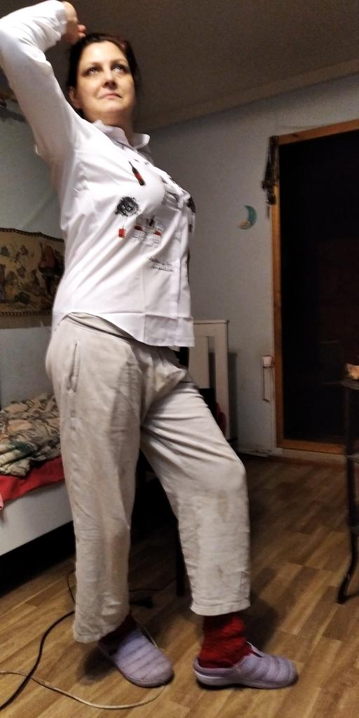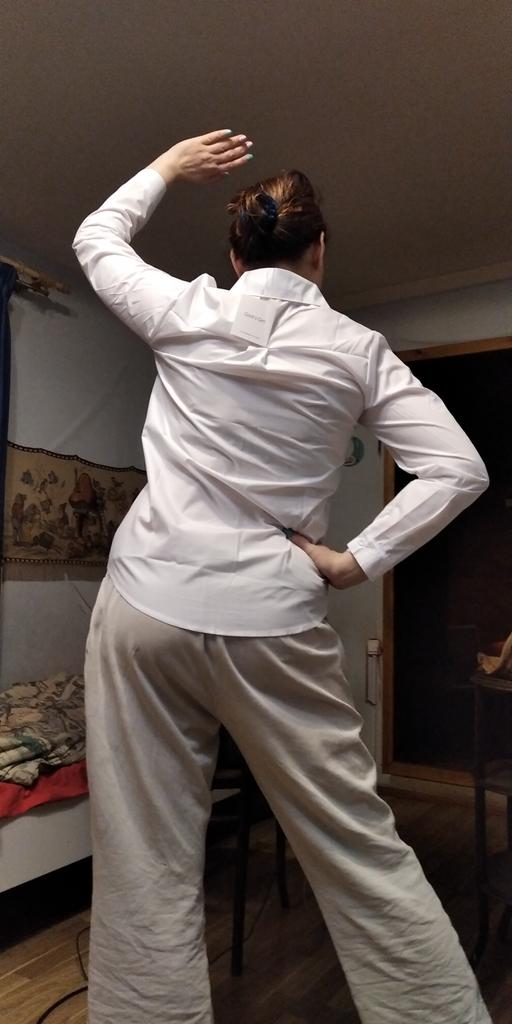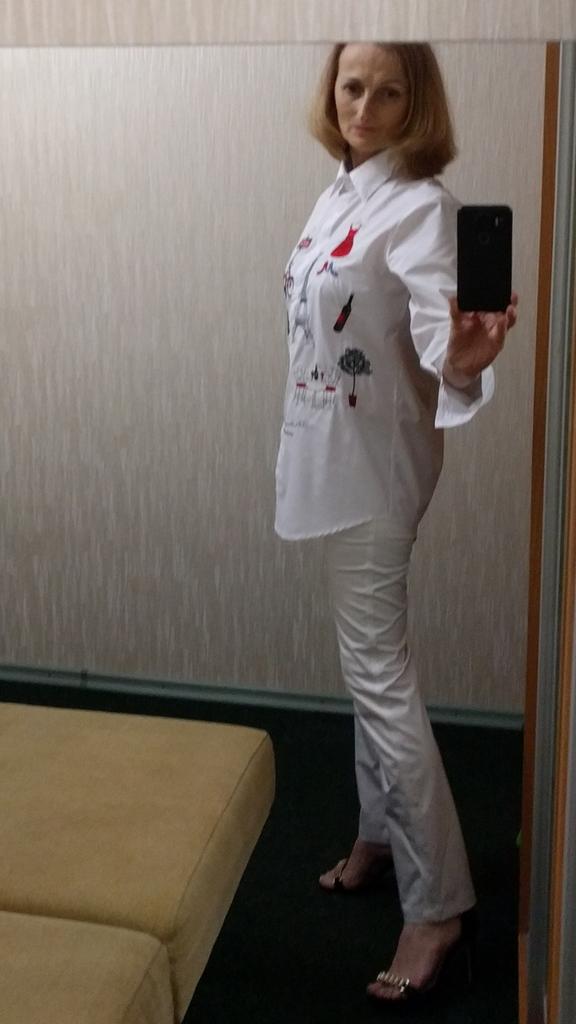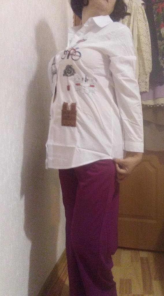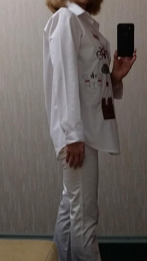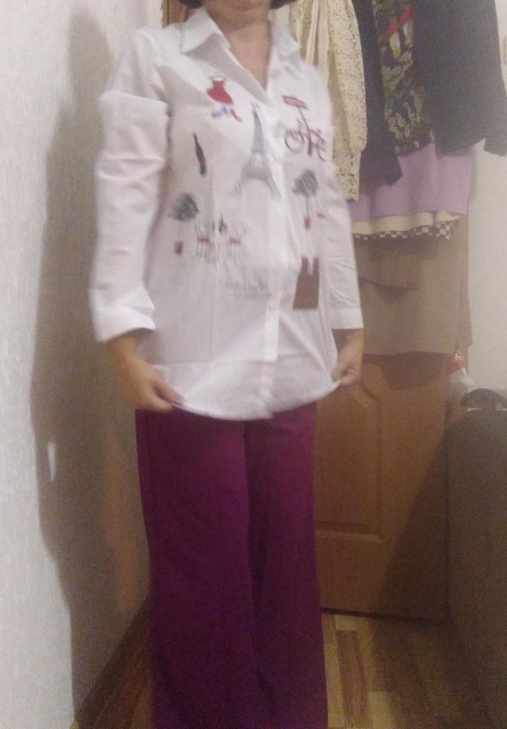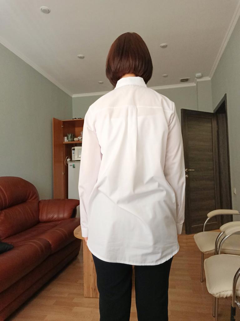 The blouse is very well sewn, all the seams are even, it came neatly packed. The fabric is snow-white, the embroidery is well done. The fabric composition is not indicated on the tag, but it is high-quality polyester, without stretch, which is usually used for women's white shirts. There is a difference between the size chart and actual measurements. I focused more on the reviews, so I guessed correctly and I thank those who leave detailed and meaningful reviews. Real measurements of R.M.: shoulders - 39 cm; chest girth-106 cm; sleeve - 60 cm; length along the back - 76 cm.
