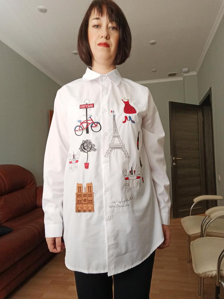 Girls, I fell in love with this shirt! Nice, clear embroidery! Beautiful fabric!