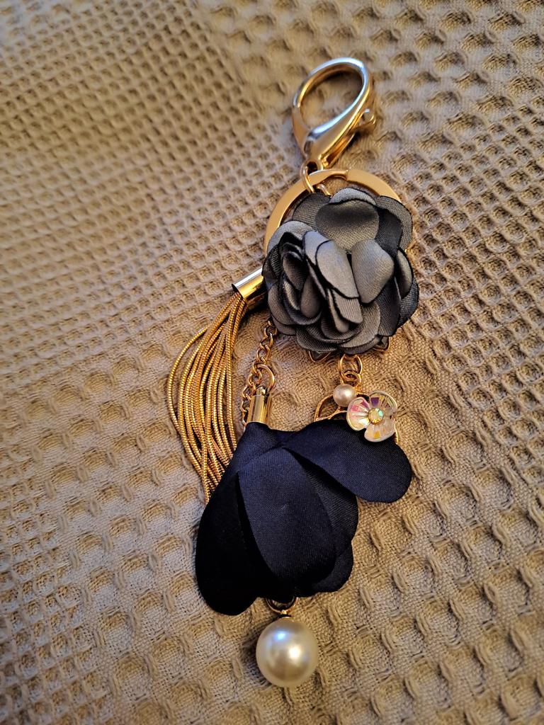 Fabric Flower Long Tassel Keychain Key Chain Keyring Women Handbag Hanging Decor