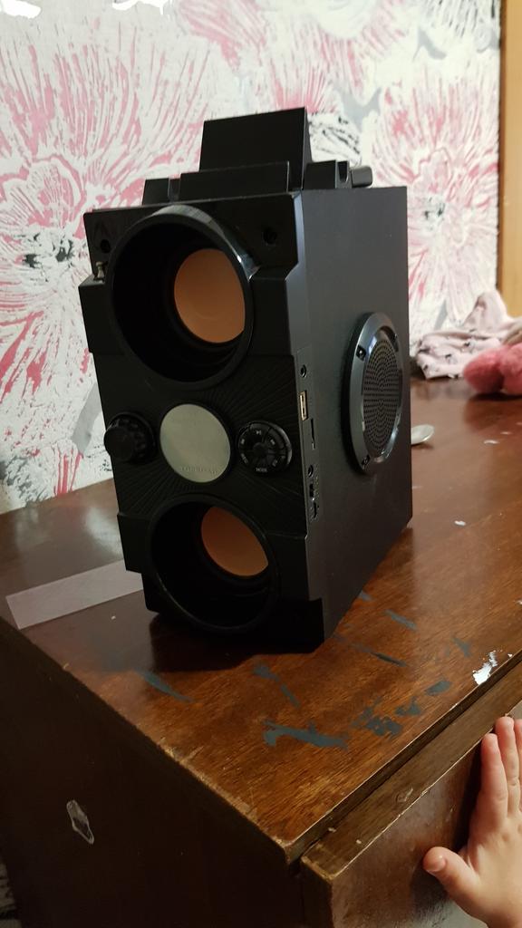 Great column! And the bass is good and the volume! Wooden case sound great!
