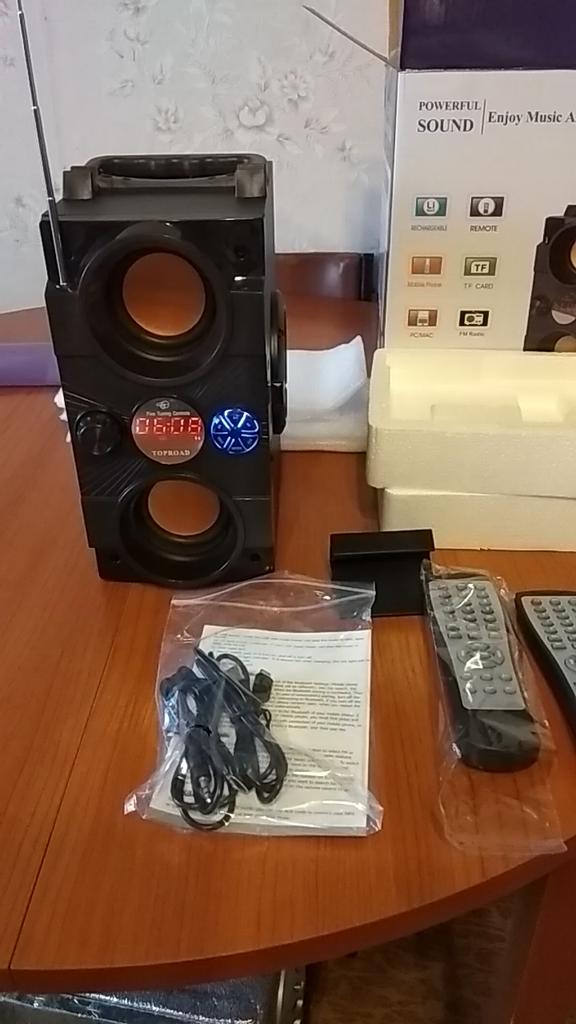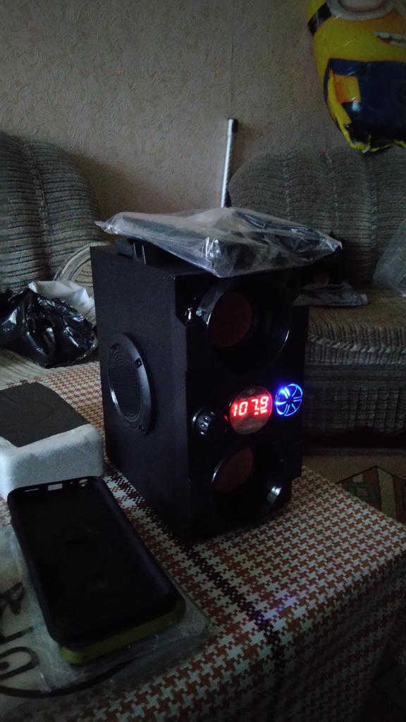 Brought by courier. The speaker is discharged, after charging everything works. The sound is cool, but not very loud.