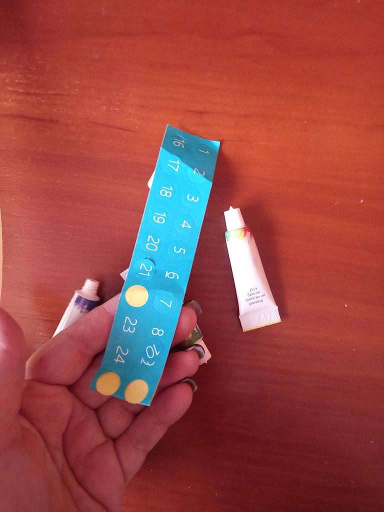 Included: paints, brushes, scheme, screws and a loop for the finished painting, canvas. It is a pity that the canvas was folded 4 times, now you need to straighten it before work
