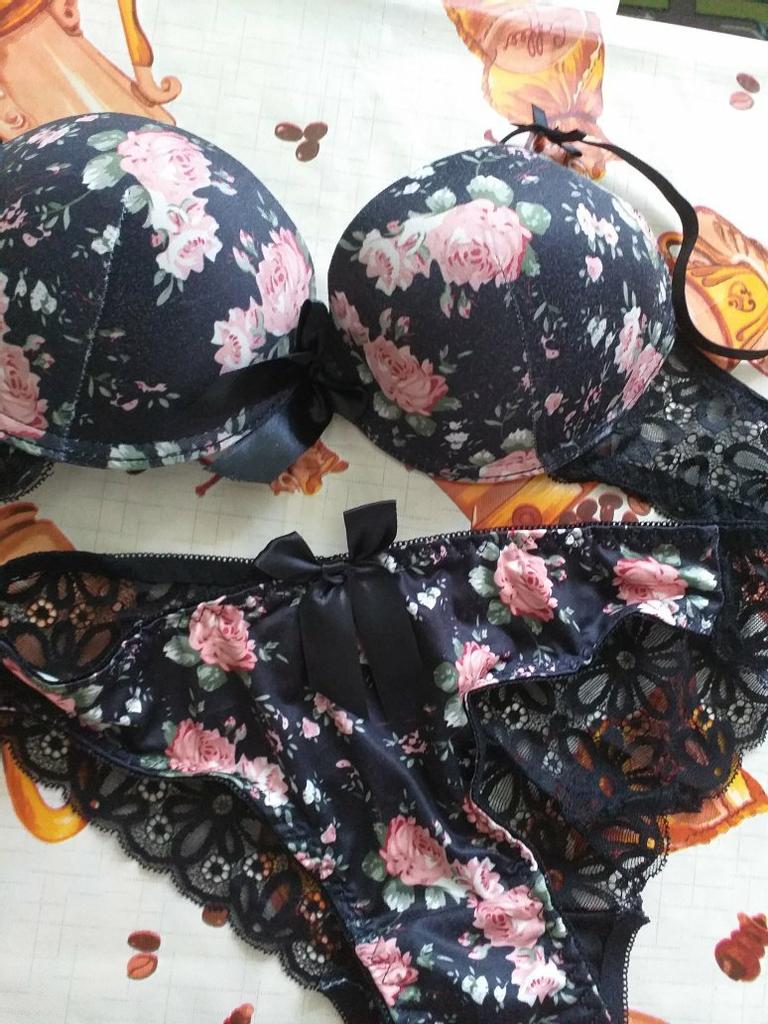Women Sexy Embroidery Lingerie Set Underwire Push-Up Thin Padded Bra Set Brassiere + Panty Floral Bras Bra Sets