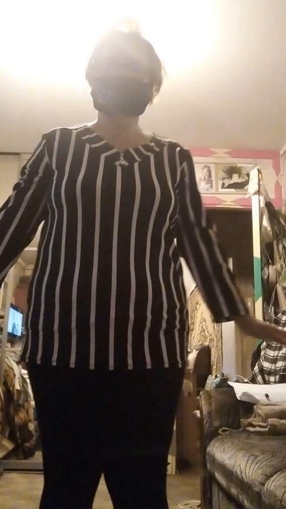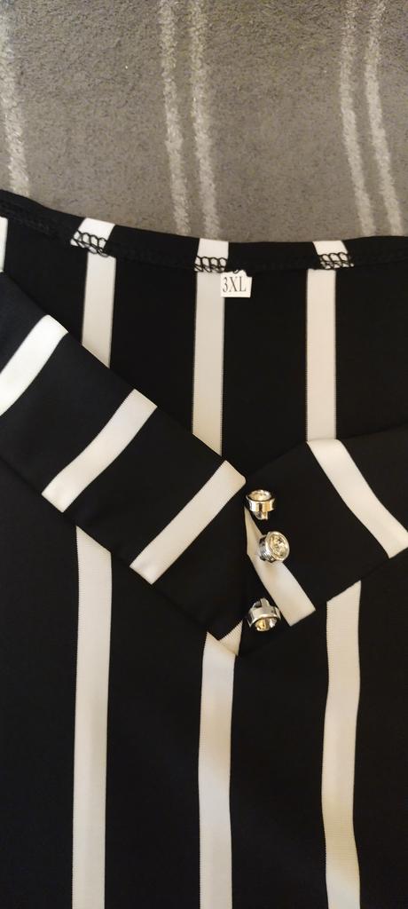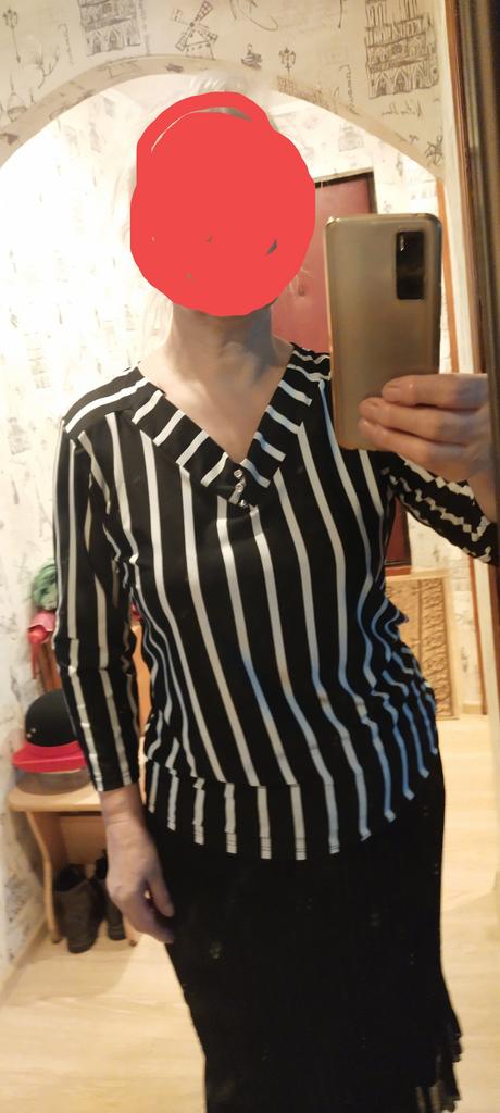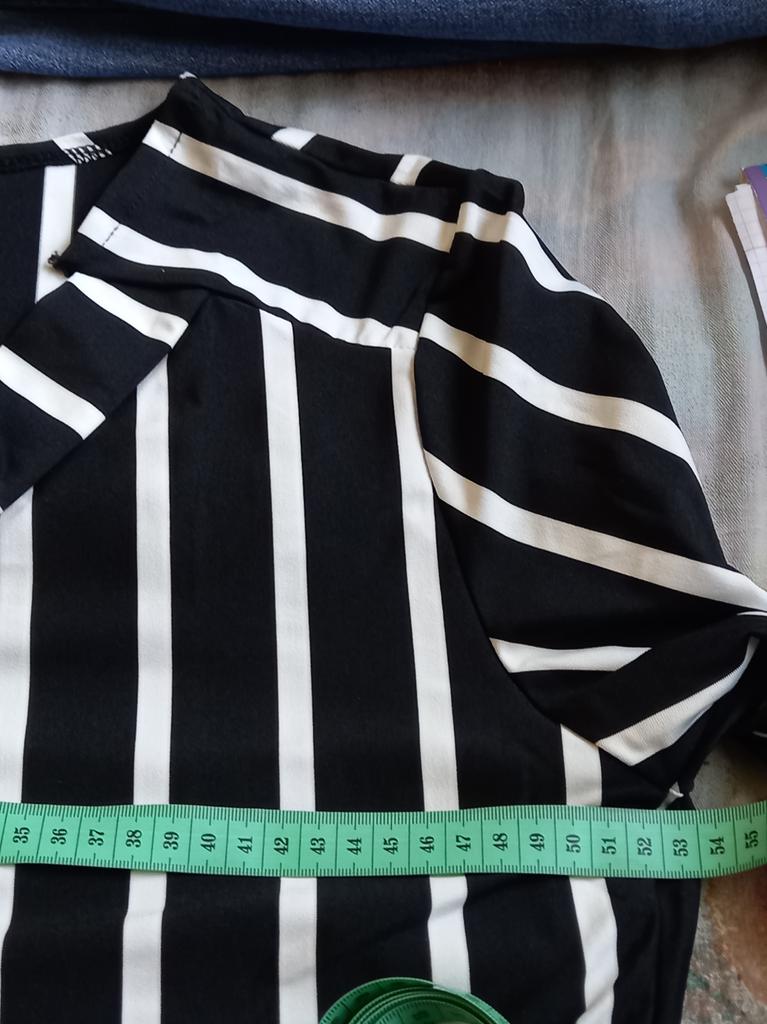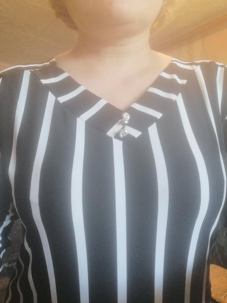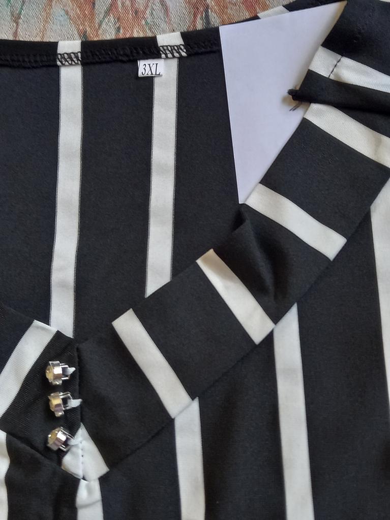 The blouse is effective with these stripes. The material is pleasant although it is synthetic. Thank you. I recommend