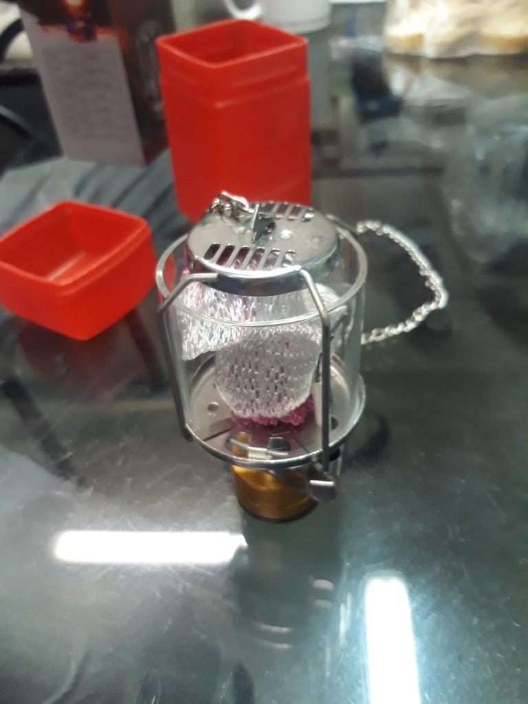 The gas lamp is intentionally very small and light. She gives off a bright light. I am very happy with it.