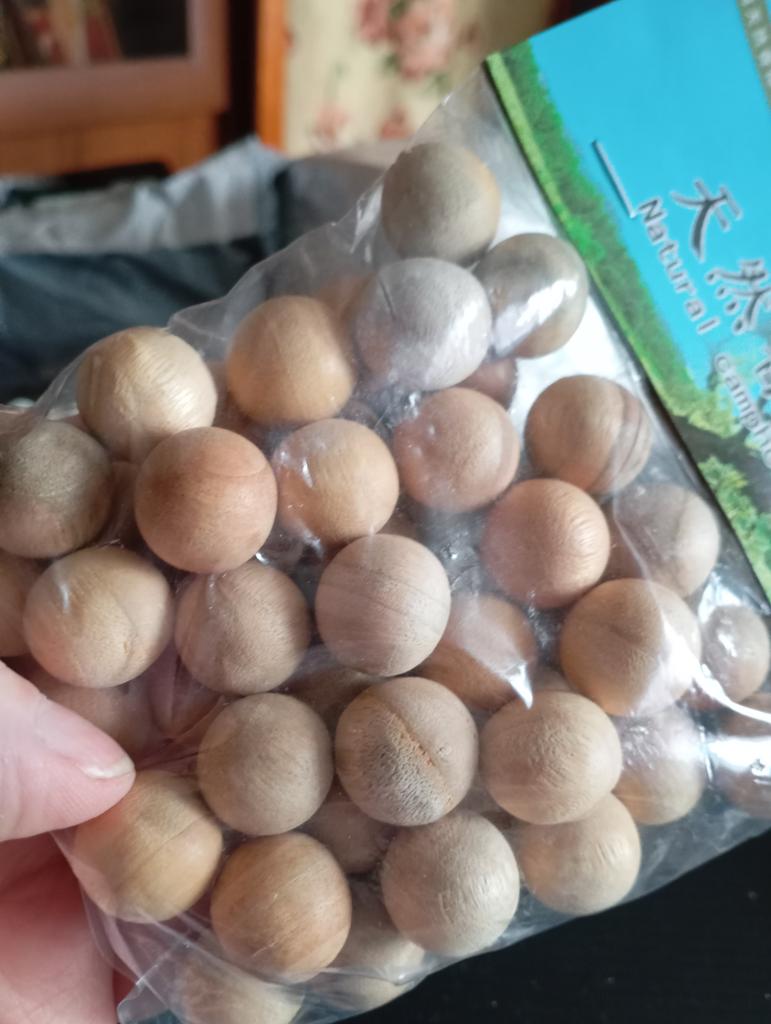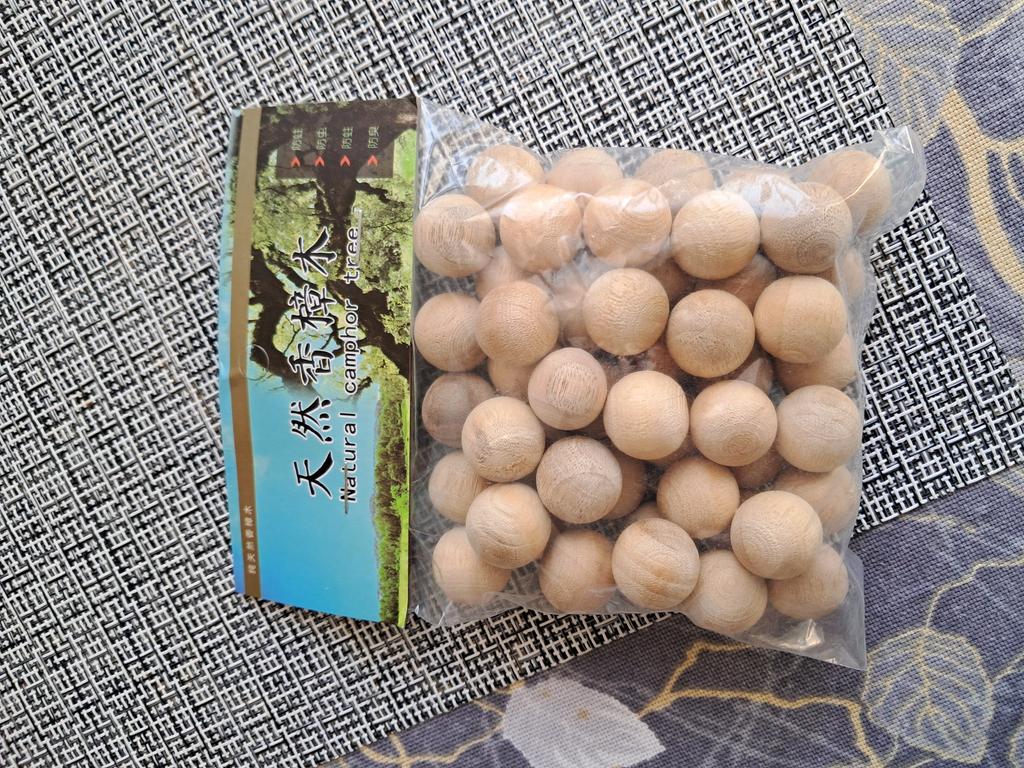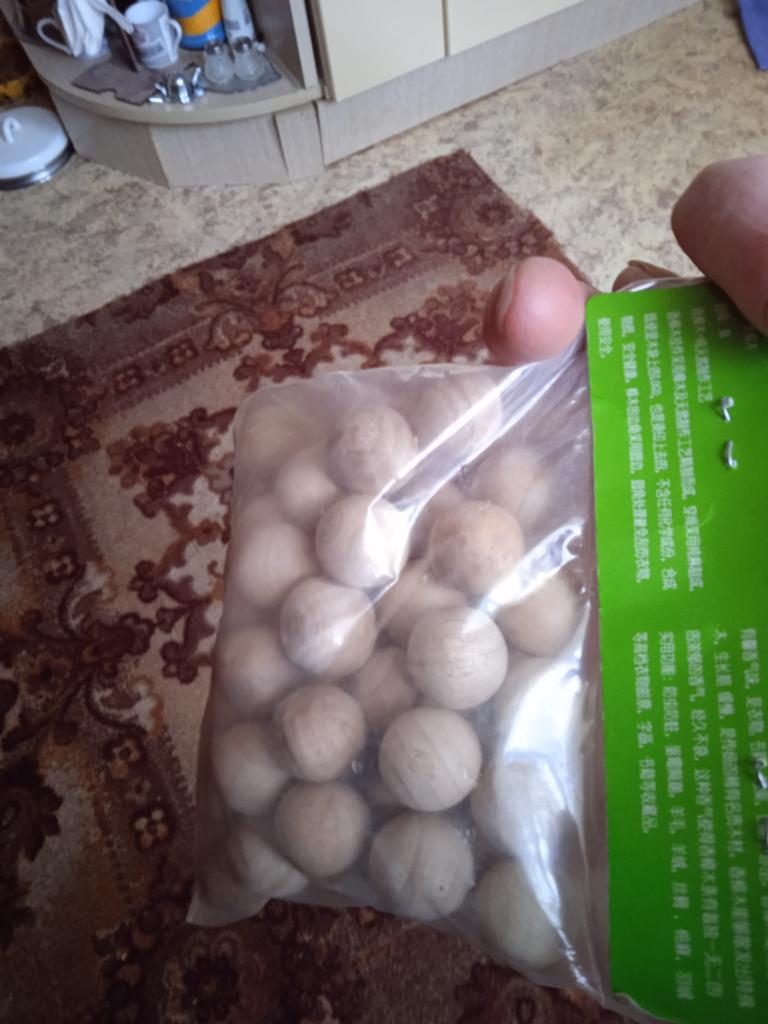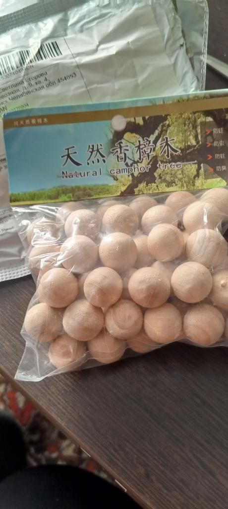 I bought another set of moth balls, made of natural camphor wood, a repellent for the closet, 50 pieces in total (though I didn't count them). They are packed in a plastic bag, they can also be packaged in different bags and placed in closets and clothes drawers. Bought for 162 ₽.