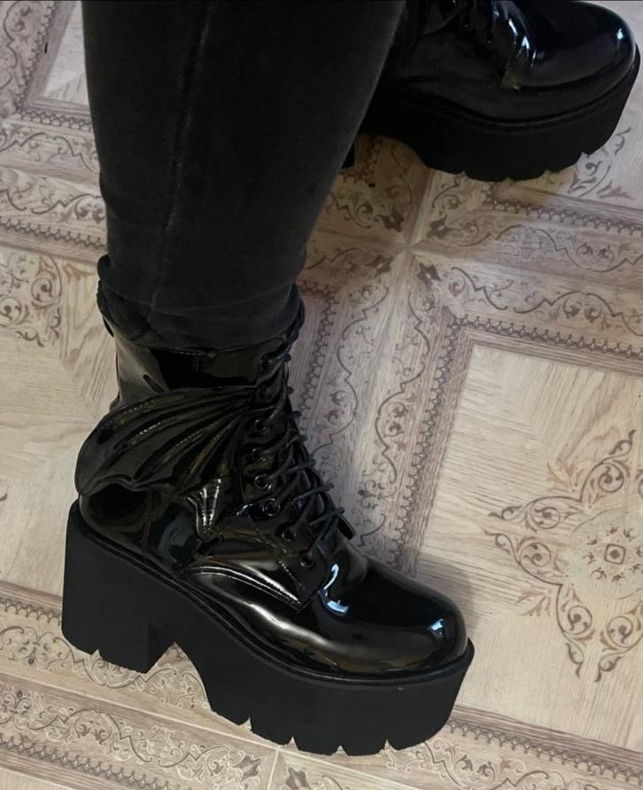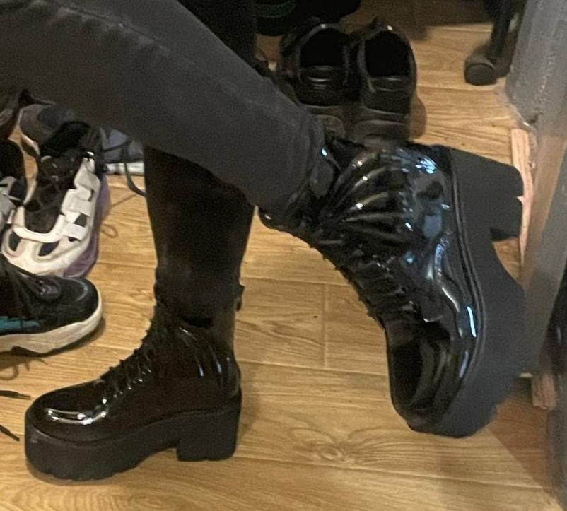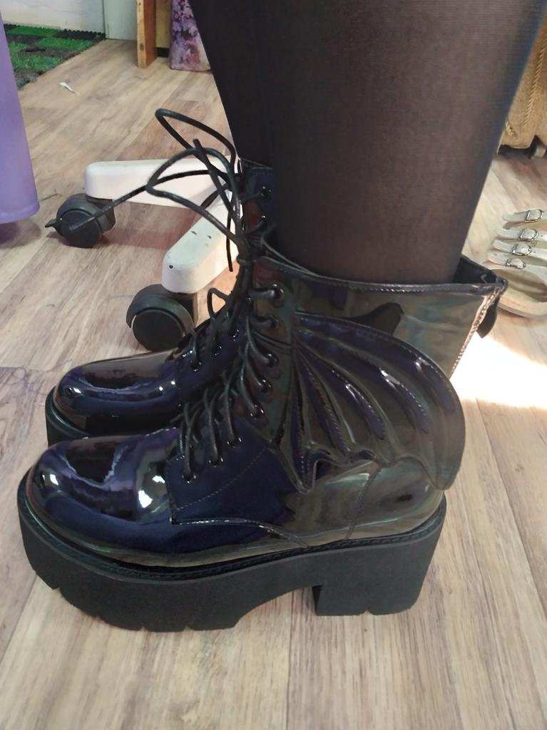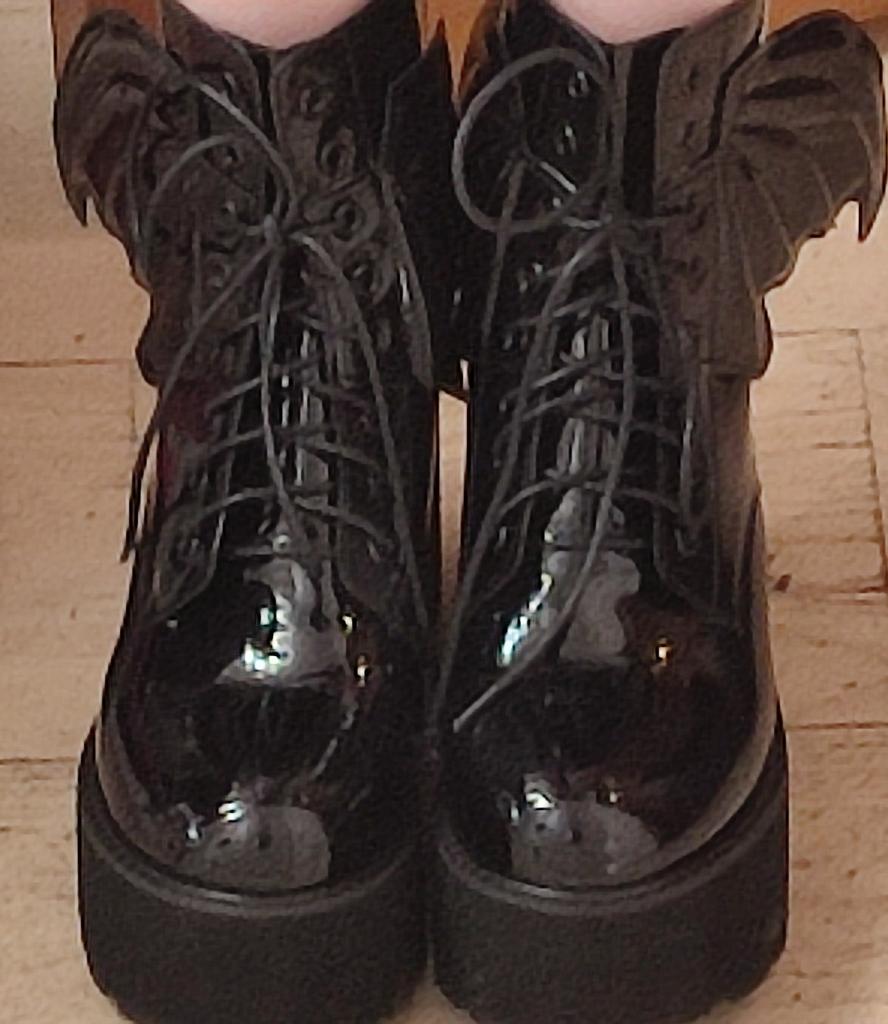 they smell a bit like PVC but they look nice, they are quite nice and they are super light, a really nice surprise and super fast delivery according to the app, they are still in Japan or something and I already have them super happy with them, nice for under my vampire gothic dresses