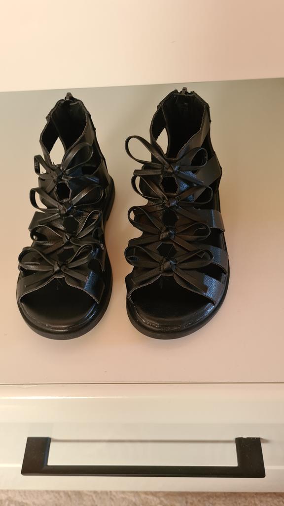 The name of the product is genuine leather. Sandals made of artificial material with a hard sole have arrived. Pleasant to the touch. PS They wore it a couple of times and started to wear it, the inscriptions are not worn at all, but the "skin" is torn.