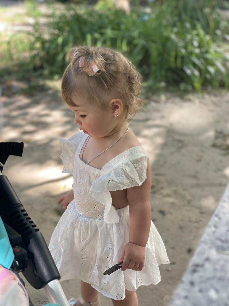 The straps are adjustable, so just right. The bow is simply on an elastic band from the underpants😅 you can make it yourself if you wish. It was disappointing that so many threads were sticking out. Everywhere. And not only at the seams, but the material itself was frayed in places. And there was only one button. On the one hand. I cut everything, sewed on the buttons, let's wear it. Just what you need for a hot summer. Thank you.