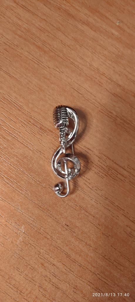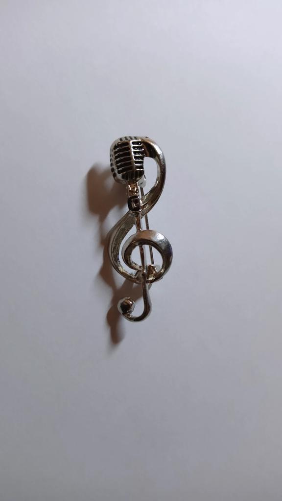 Vintage Silver Microphone Brooch Ladies Men'S Musical Note Pin Gift