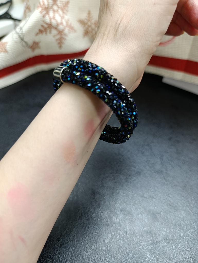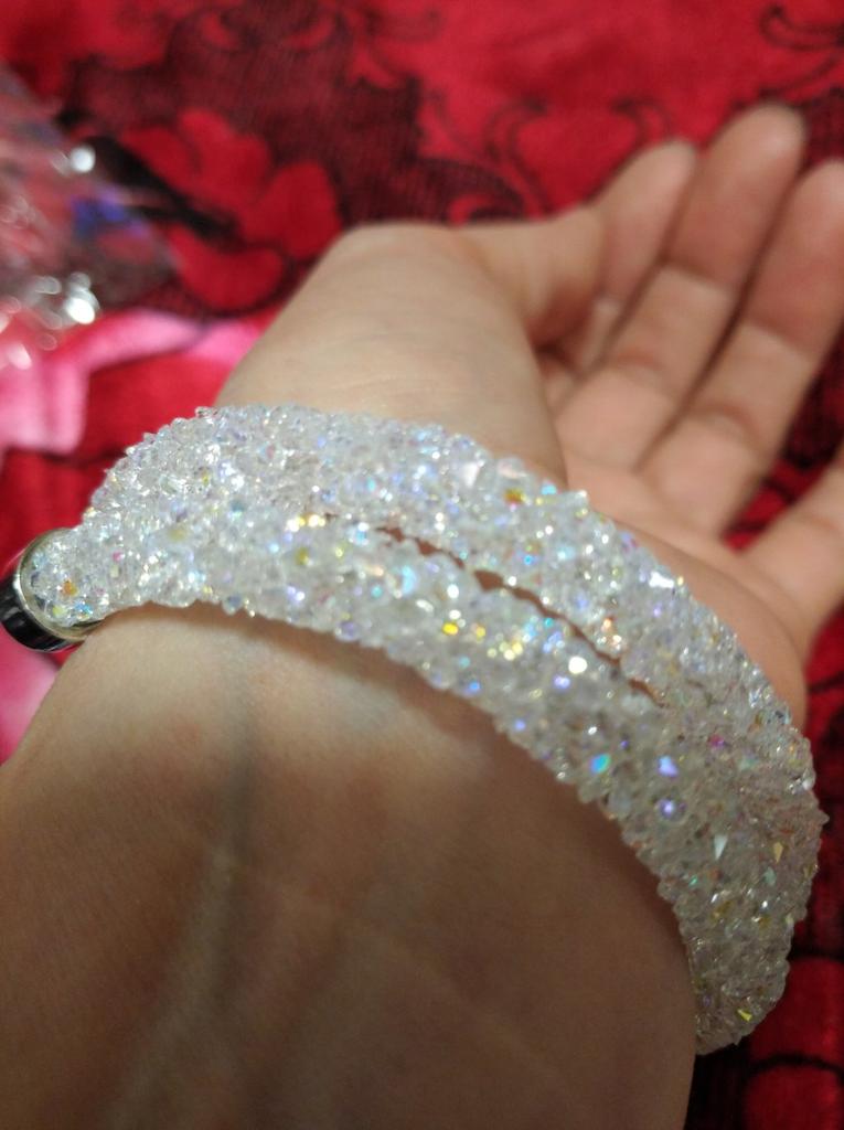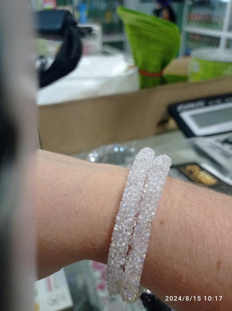 Beautiful bracelet. Quality: silicone glue and very small glass beads on it. These beads come off and make a mess. In general, you can't wear anything.