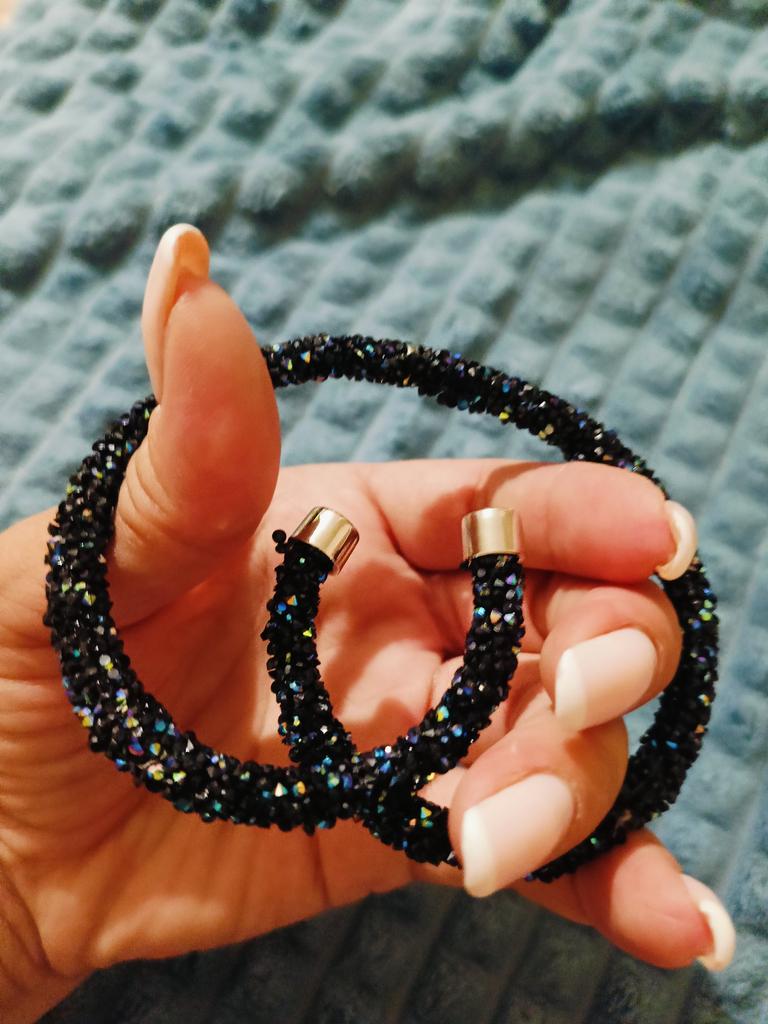 I took it in silver - a super bracelet arrived. This transparent one was a complete disappointment. These sparkles fell out, the bracelet was glued together. The black bracelet did not arrive at all(((