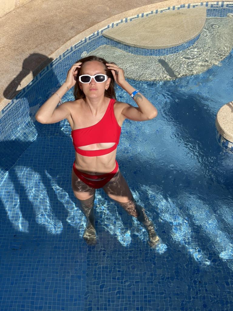 The swimsuit is comfortable but doesn’t look right with my belly.