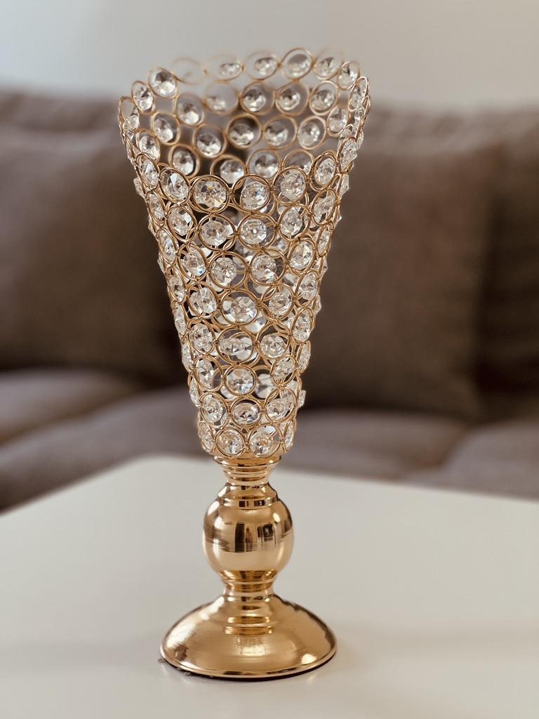 Crystal Candle Holder 3 Arms Candelabra Wedding Table Ornament Golden