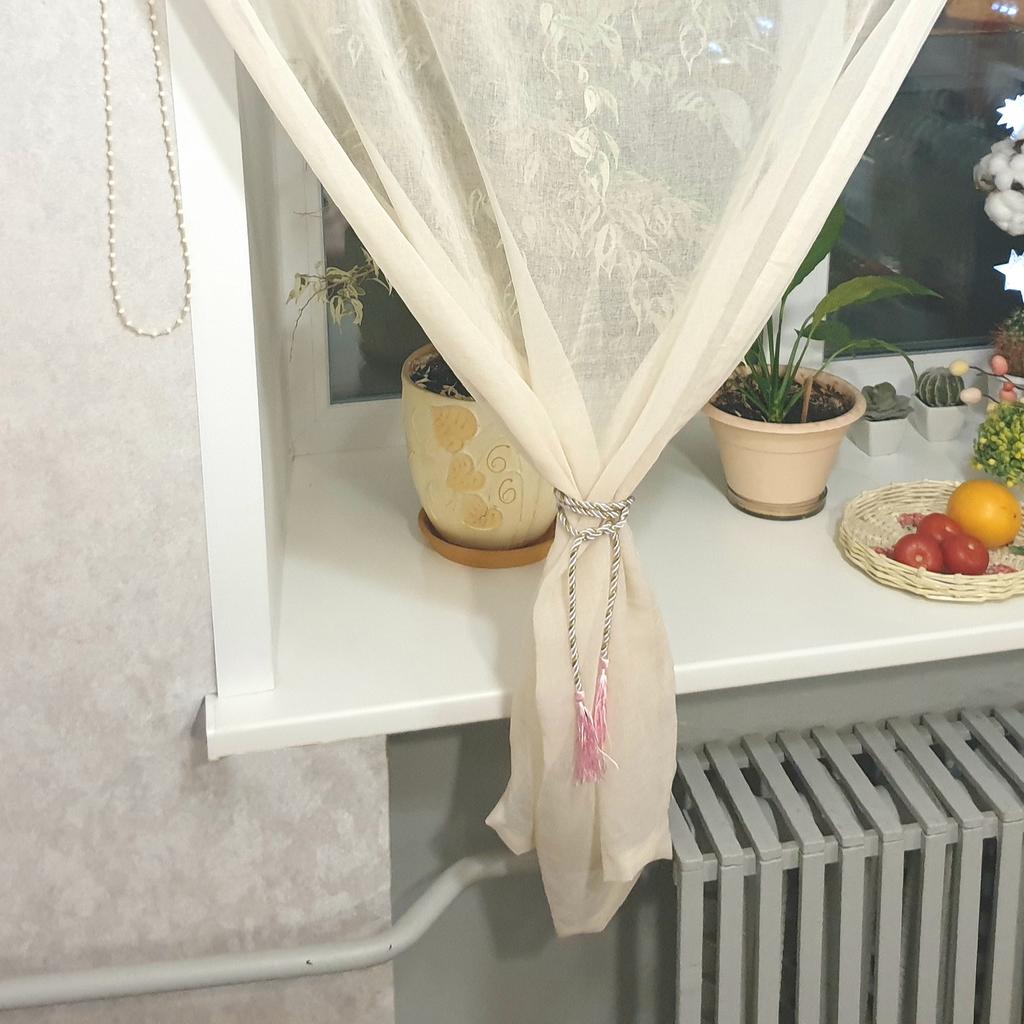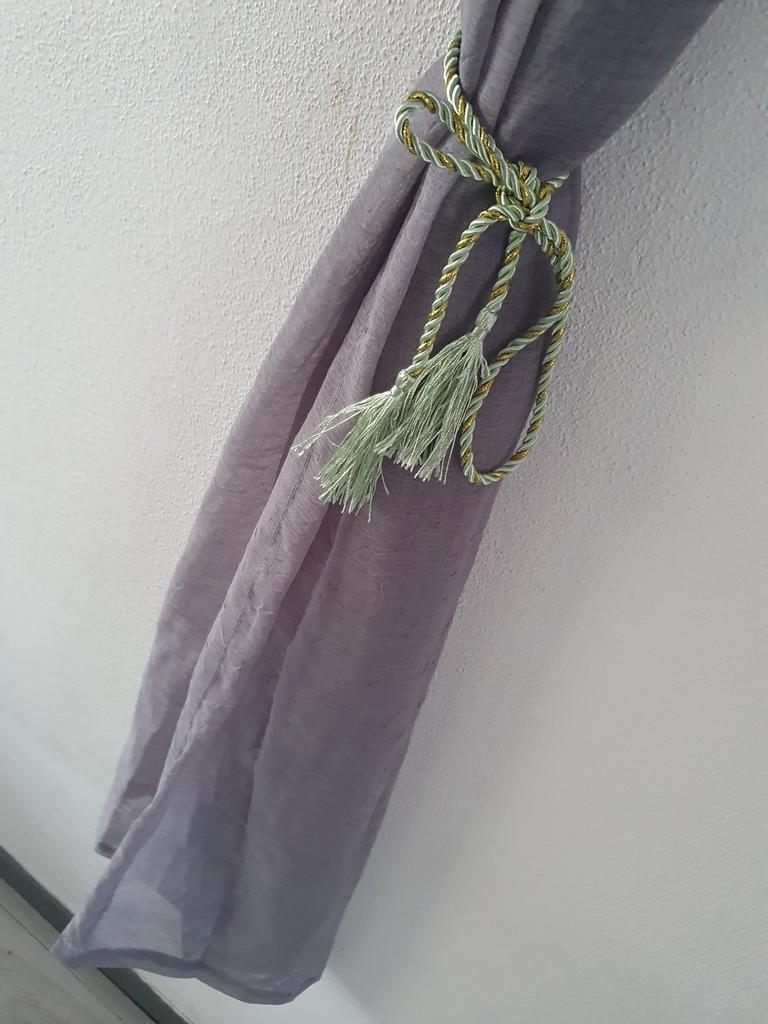 Nice little curtain W100×L130 i order in gray. with a Nice green rope with it. perfect for in my kitchen. in many collours to order shipping time between the 2-3 weeks