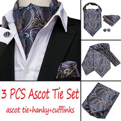 Vintage Ascot Tie for Men Casual Tie for Men Silver Grey Cravat Ascot Paisley Tie Hanky Cufflink Set