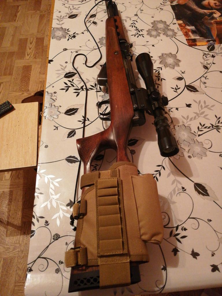 The stock cover fits perfectly. I struggled a bit to put on the Velcro strips, but finally the effect was decent. The ammunition pocket can be moved to both sides. It is solidly and carefully sewn. I am satisfied with the purchase and I can confidently recommend the product. For this money, you won't buy anything better in this quality. Ideally you can fit it on the stock and under the face. I highly recommend the seller and the goods.