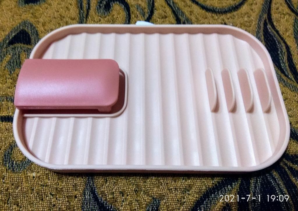 The stand is of excellent quality, the plastic is thick, there is a built-in stand for lids. I am happy with the purchase!