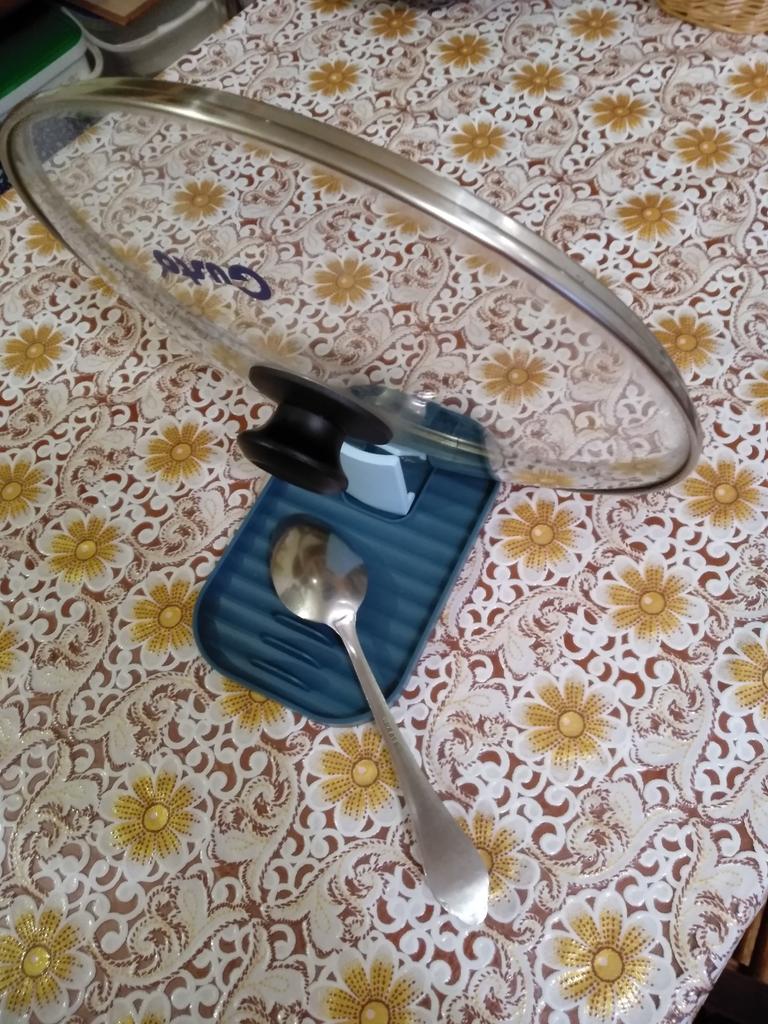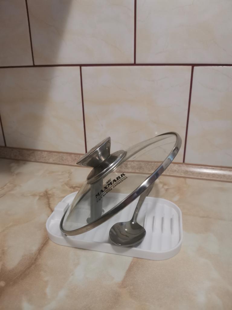 I am 100% satisfied 😁 A wonderful stand for a spoon and a lid. The lid is large, 26 cm, heavy, but the stand does a great job. I hope it will last a long time. Thank you 💙💛