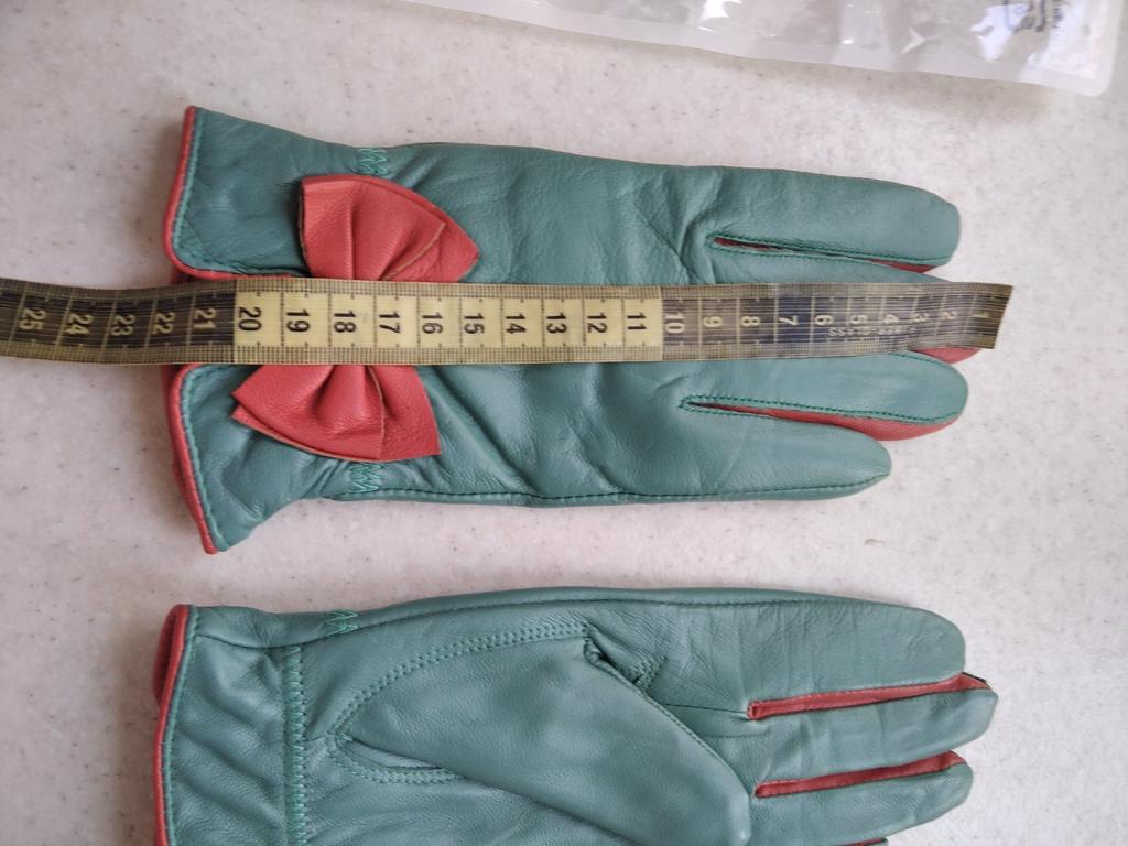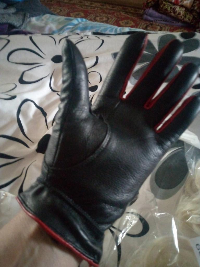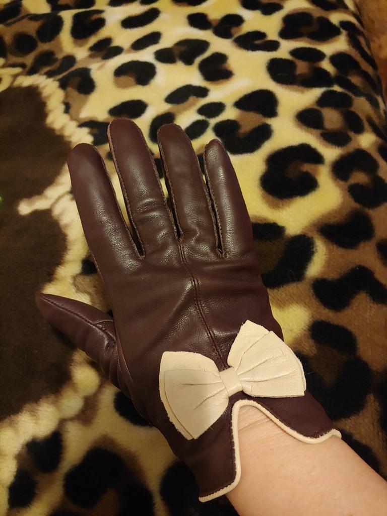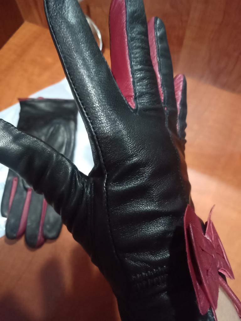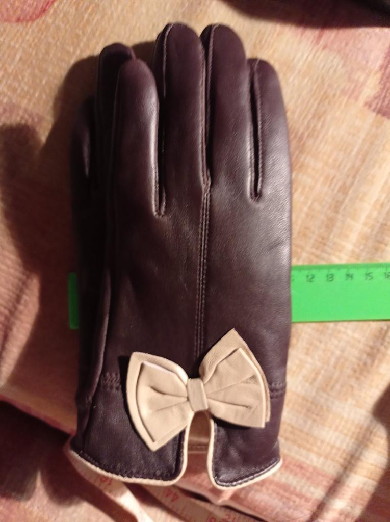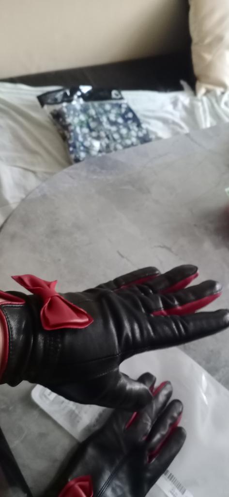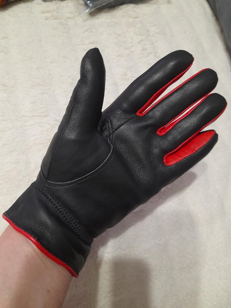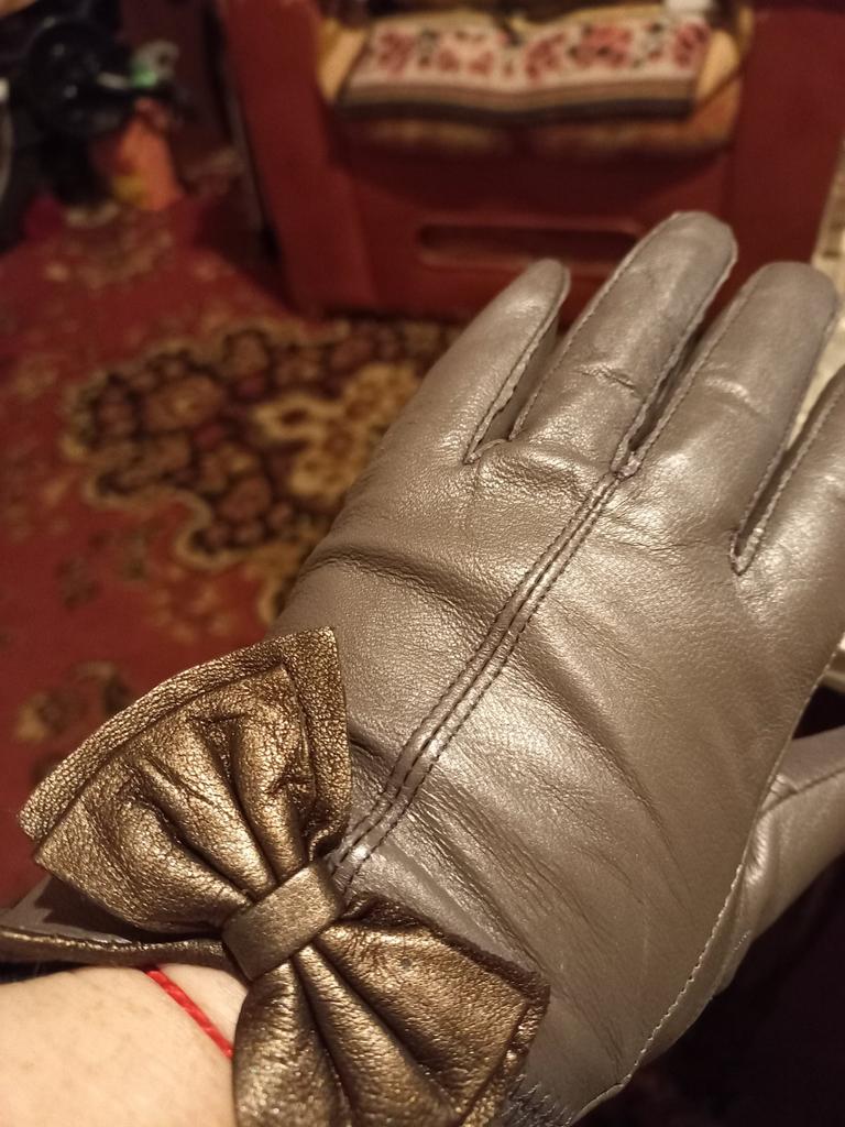 Gloves π€β€οΈ Genuine leather (they really smell like leather! There is a genuine leather label inside). Inside there is a light plush lining. Suitable for cold autumn, but in principle everything is individual π Black with red trim and bows π£π Everything is done very carefully π Size L fits wrist circumference 18cm and palm width 8cm. π The price is especially nice for the promotion of 3 productsπ€ Recommend βββββ Happy shopping everyone! πΉ