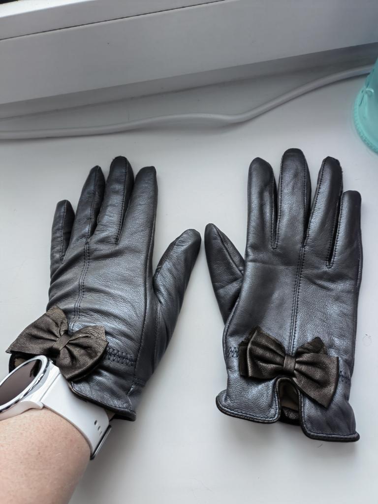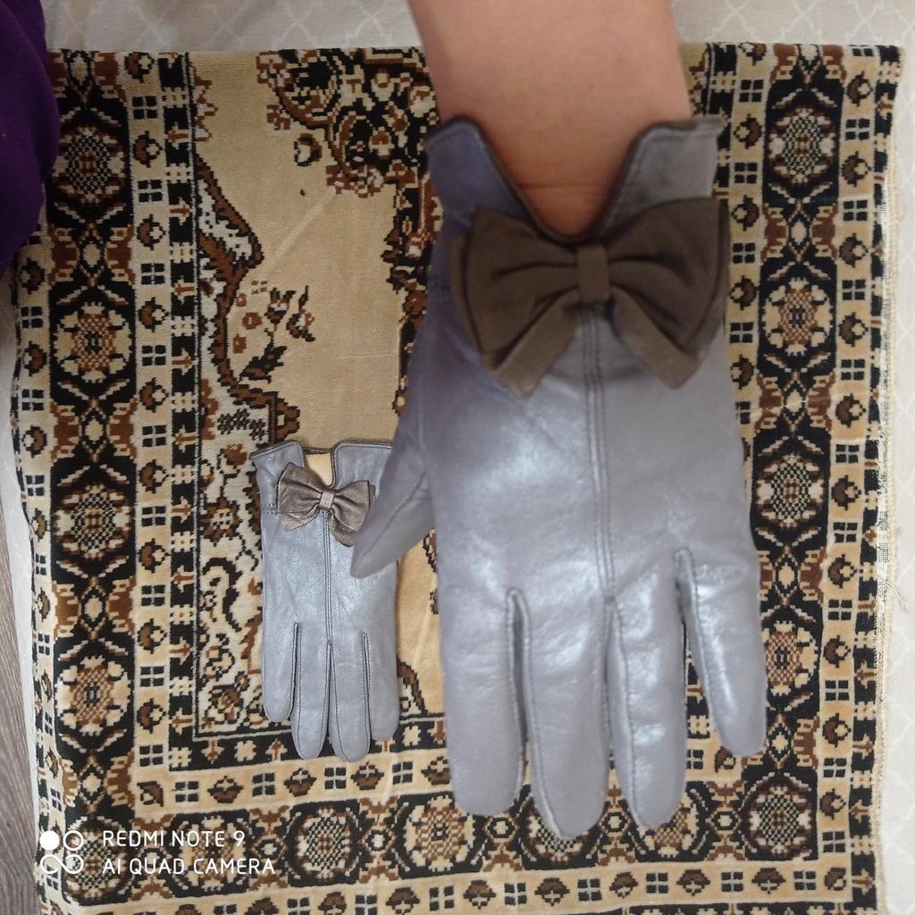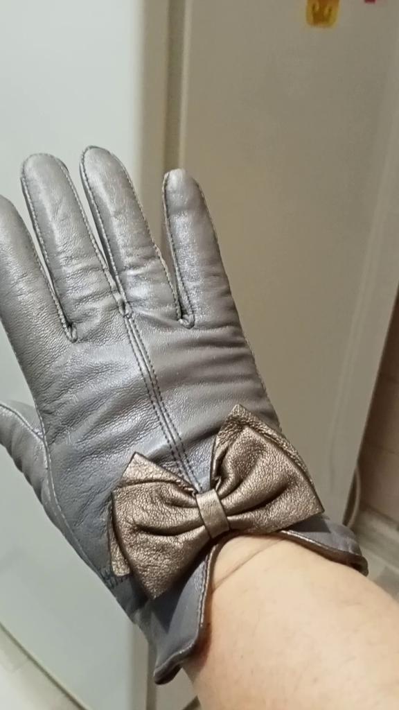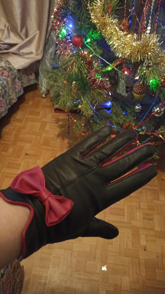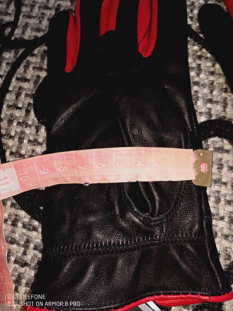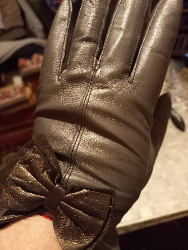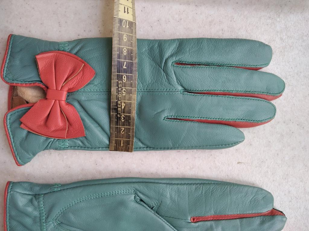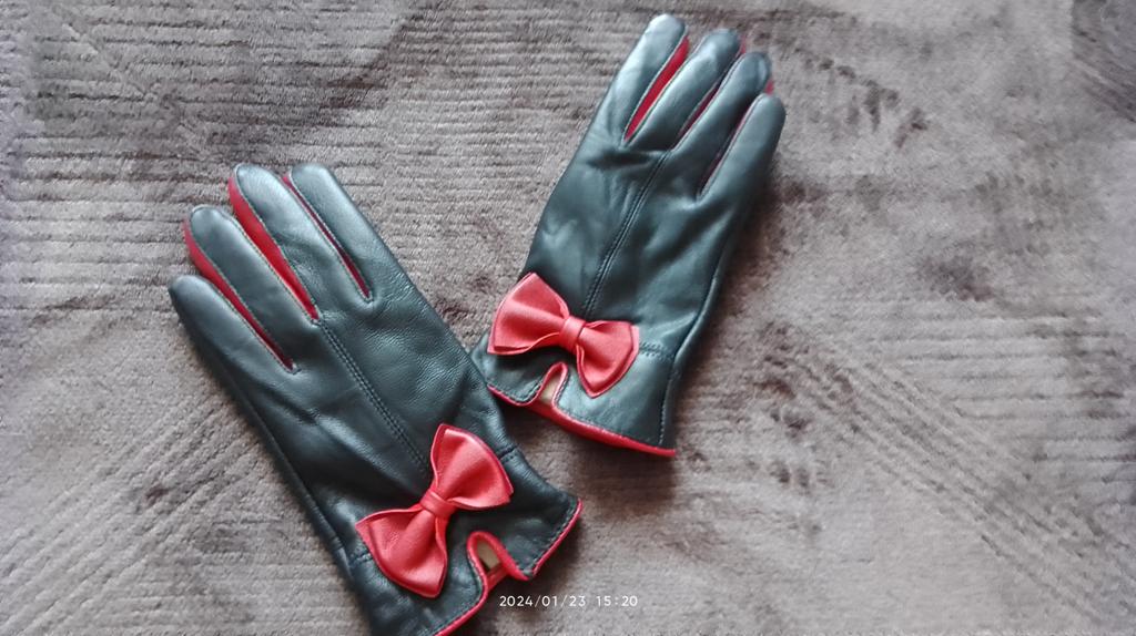Gloves π€β€οΈ Genuine leather (they really smell like leather! There is a genuine leather label inside). Inside there is a light plush lining. Suitable for cold autumn, but in principle everything is individual π Black with red trim and bows π£π Everything is done very carefully π Size L fits wrist circumference 18cm and palm width 8cm. π The price is especially nice for the promotion of 3 productsπ€ Recommend βββββ Happy shopping everyone! πΉ