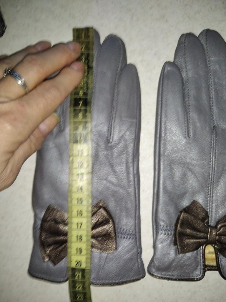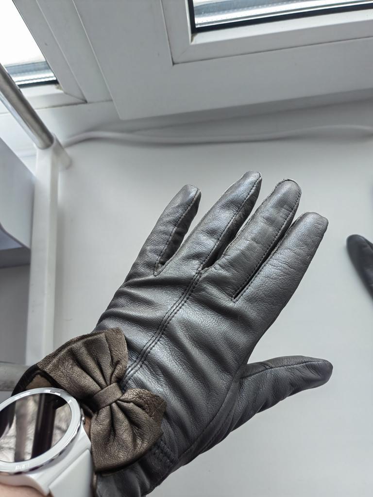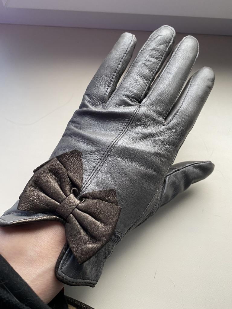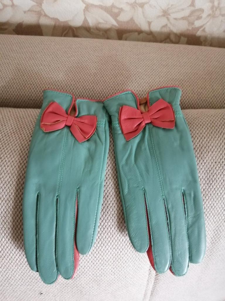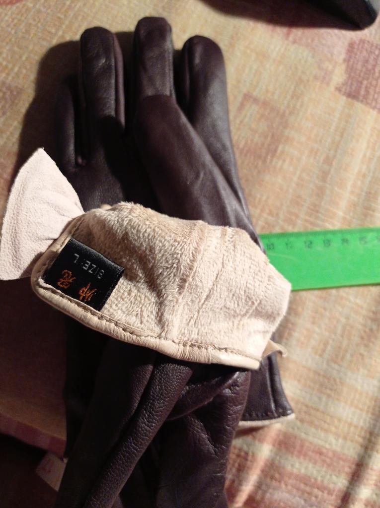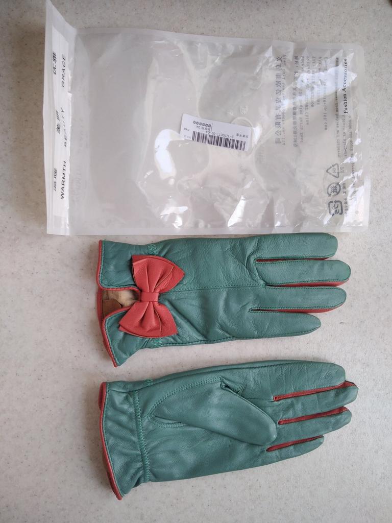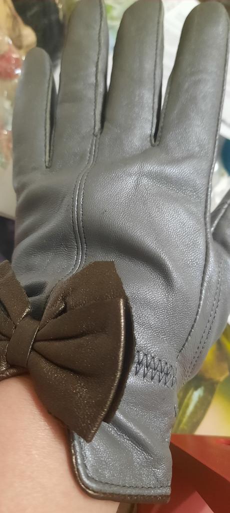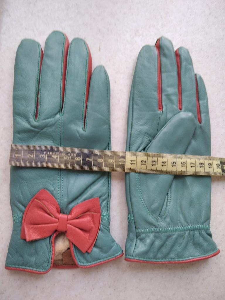 Gloves π€β€οΈ Genuine leather (they really smell like leather! There is a genuine leather label inside). Inside there is a light plush lining. Suitable for cold autumn, but in principle everything is individual π Black with red trim and bows π£π Everything is done very carefully π Size L fits wrist circumference 18cm and palm width 8cm. π The price is especially nice for the promotion of 3 productsπ€ Recommend βββββ Happy shopping everyone! πΉ
