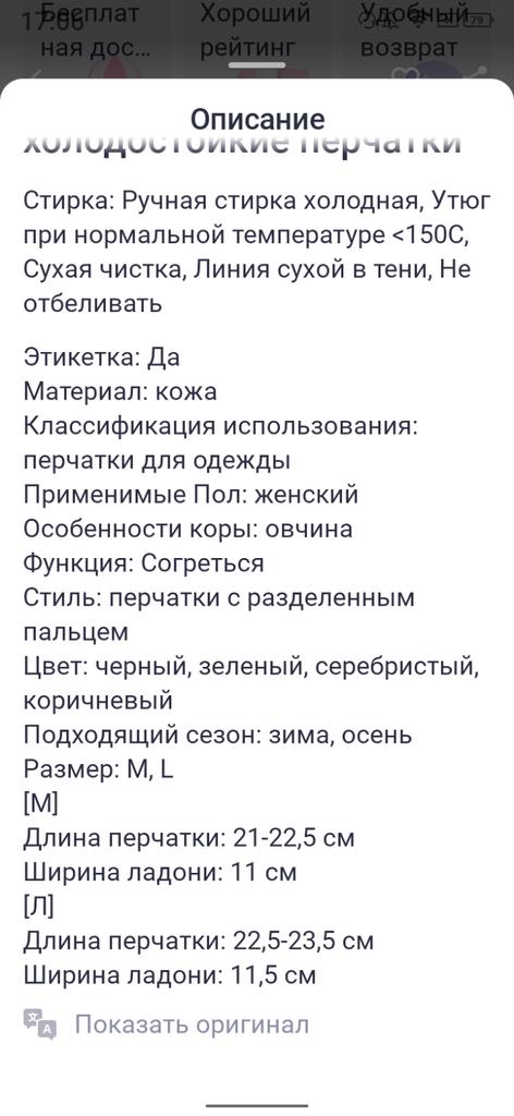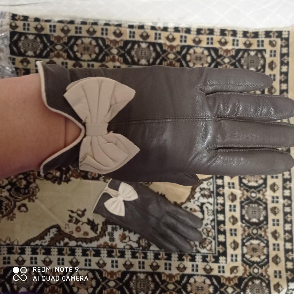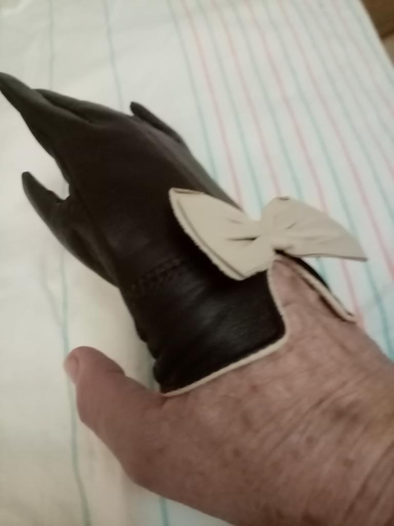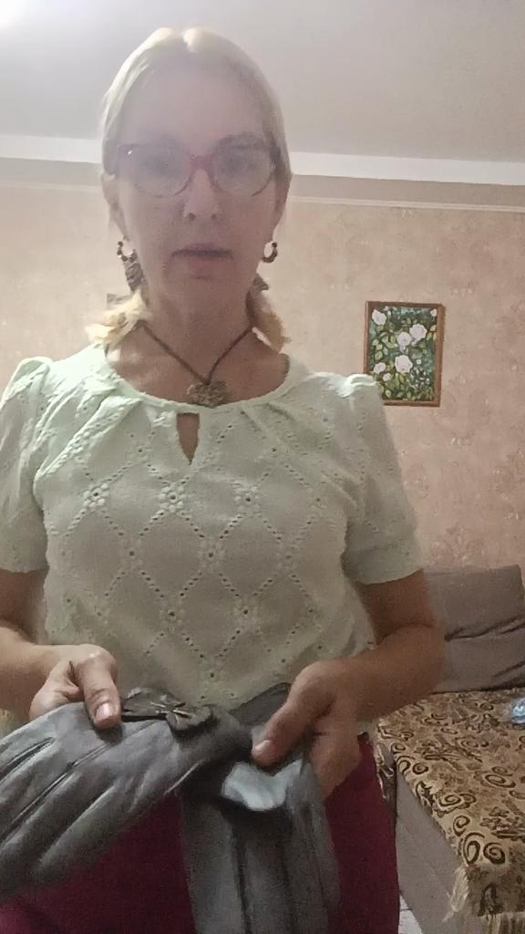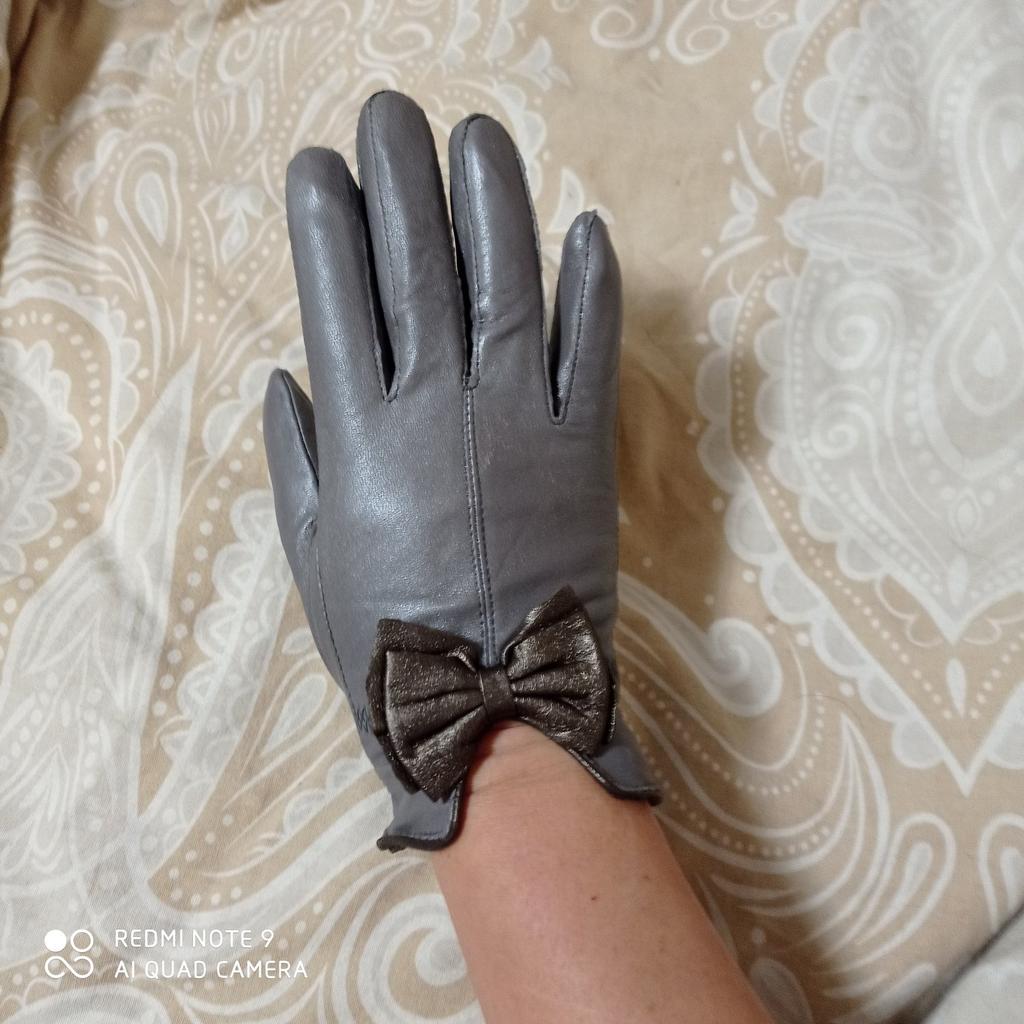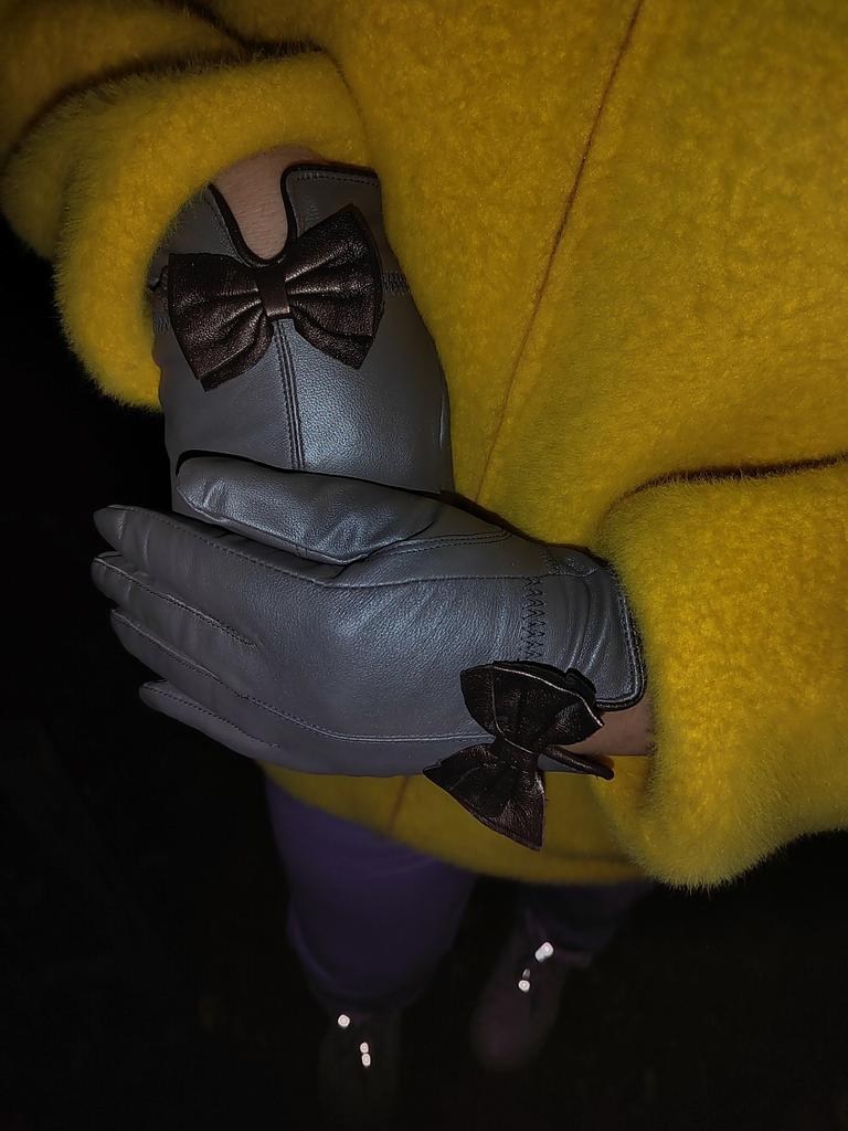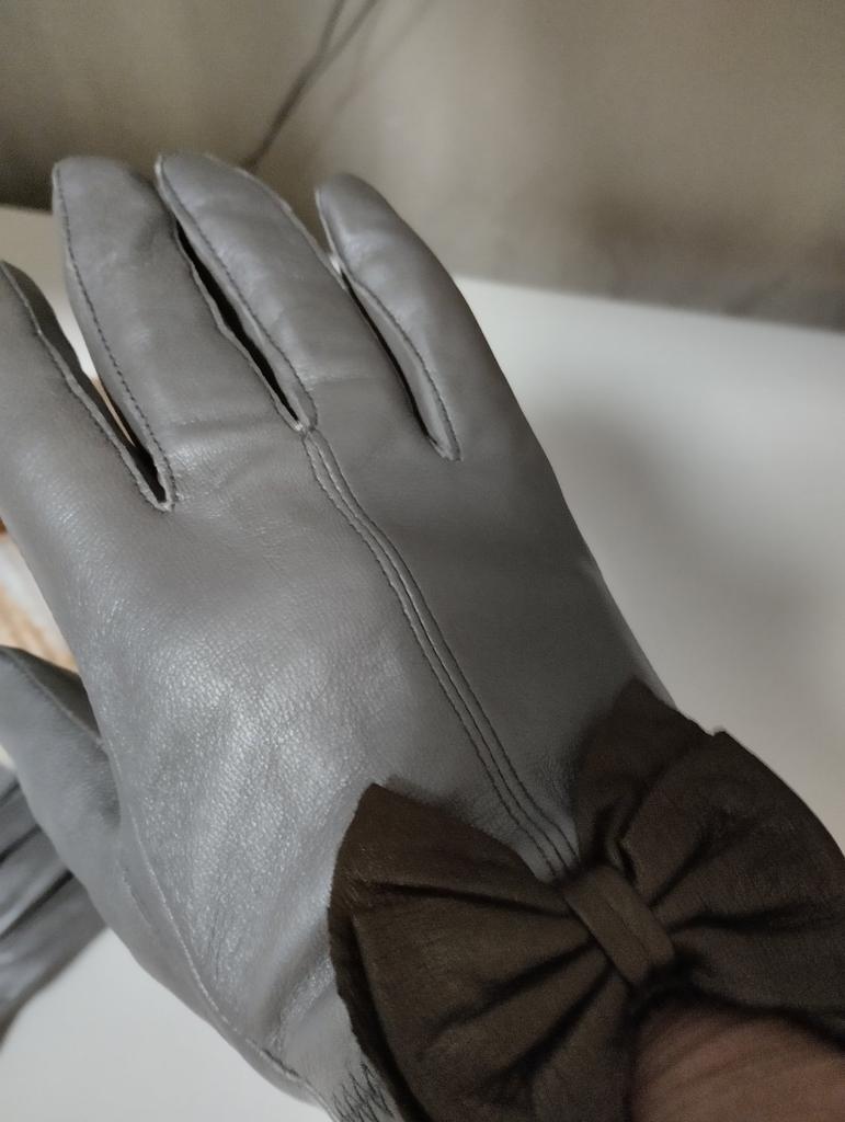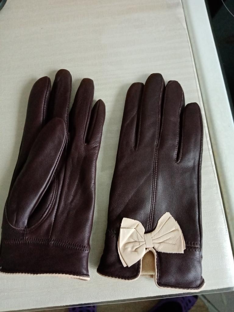 Gloves π€β€οΈ Genuine leather (they really smell like leather! There is a genuine leather label inside). Inside there is a light plush lining. Suitable for cold autumn, but in principle everything is individual π Black with red trim and bows π£π Everything is done very carefully π Size L fits wrist circumference 18cm and palm width 8cm. π The price is especially nice for the promotion of 3 productsπ€ Recommend βββββ Happy shopping everyone! πΉ