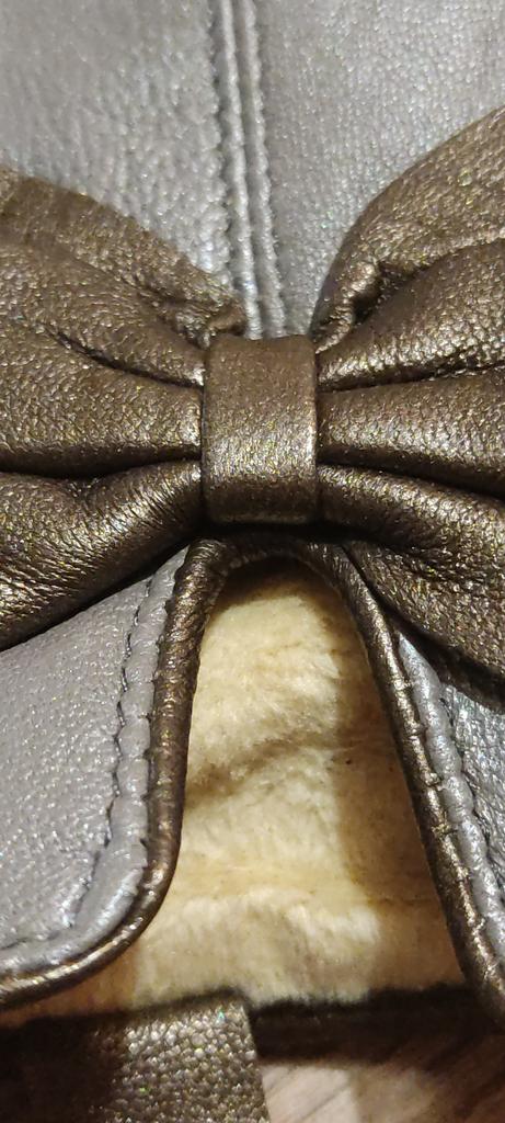 The bow on one glove is deformed.