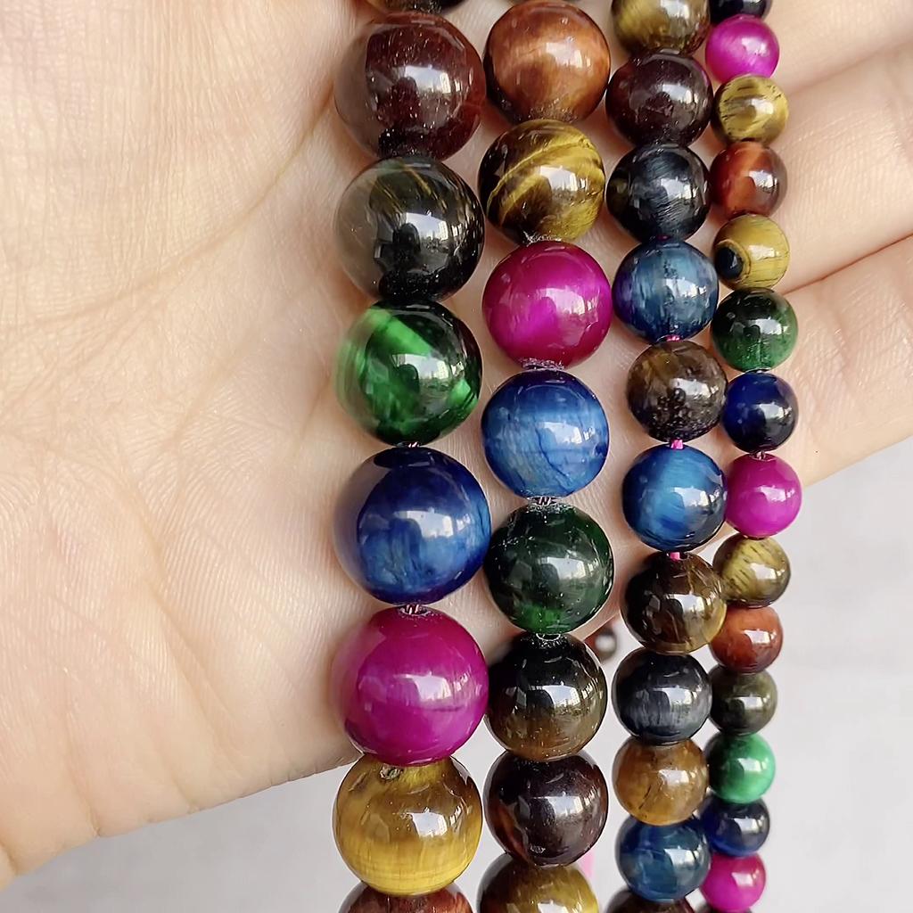 Natural Stone Colorful Tiger Eye Round Loose Beads 4/6/8/10/12MM For Jewelry Making DIY Bracelet