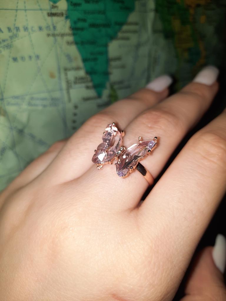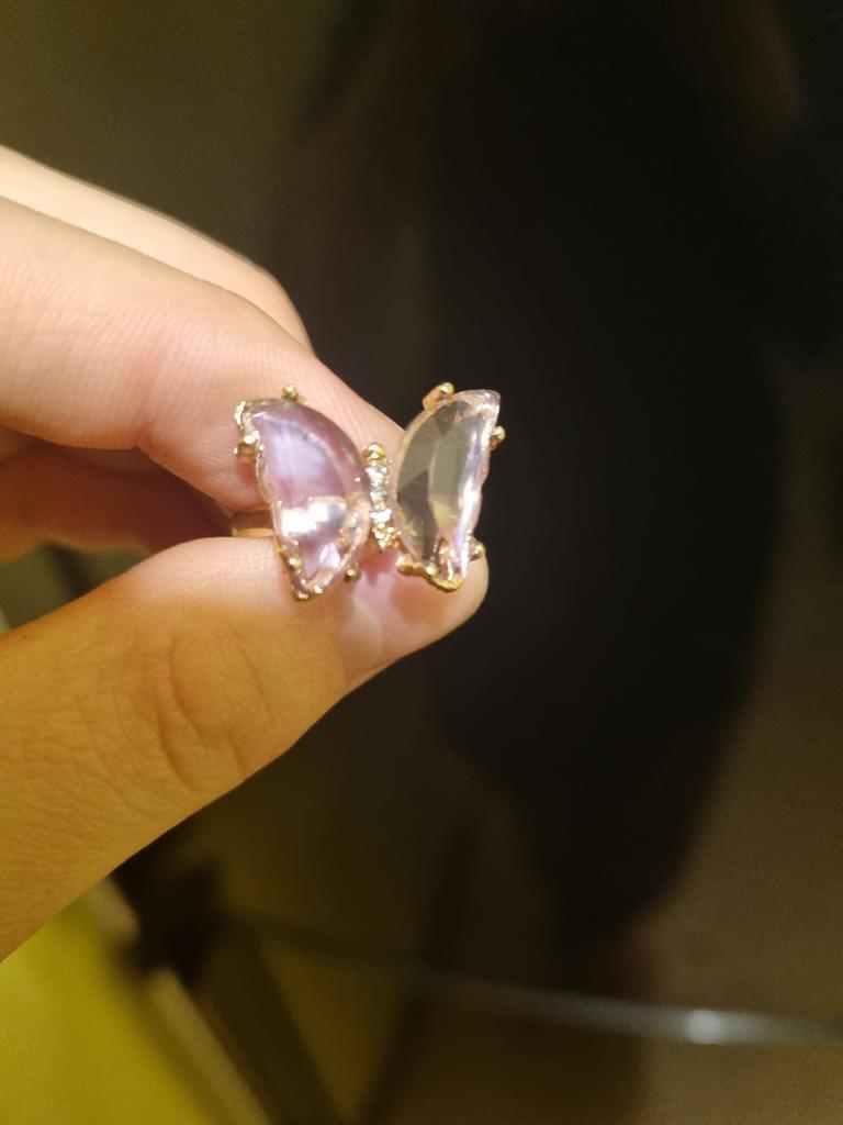 Fashion Copper Crystal Butterfly Ring Feminine Charm Female Color Butterfly Ring Jewelry
