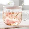 Cherry Blossom Travel Glass Coffee Mug Outdoor Heat-Resistant Scale Teacup With Non-Slip Cover Transparent Milk Breakfast Cup
