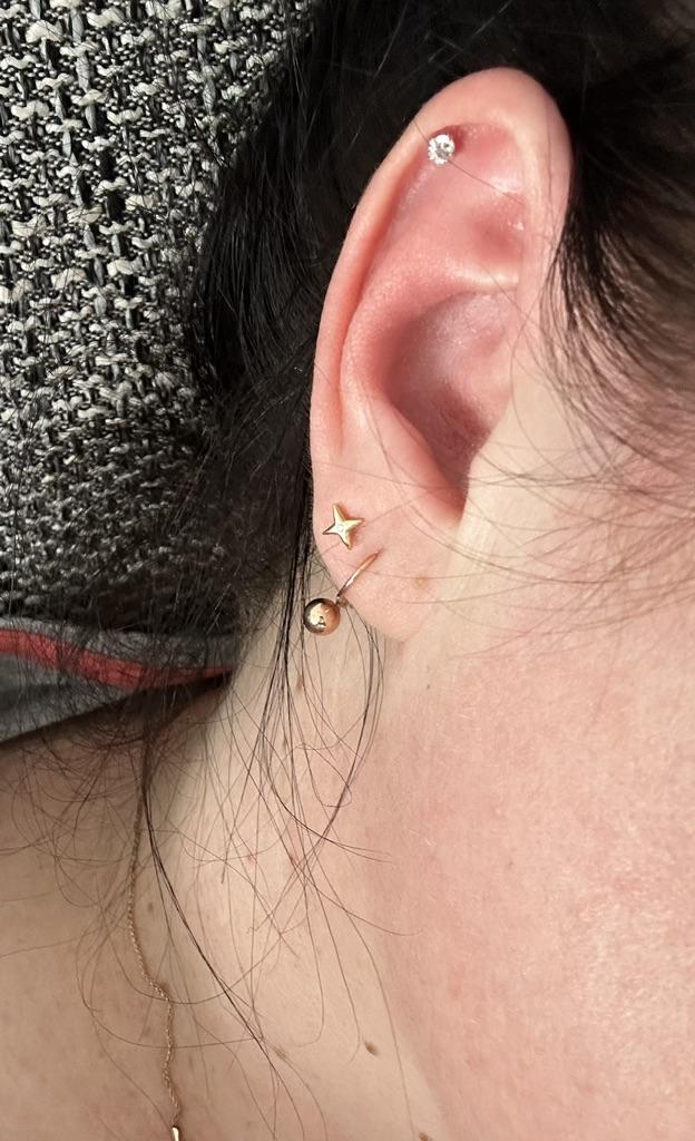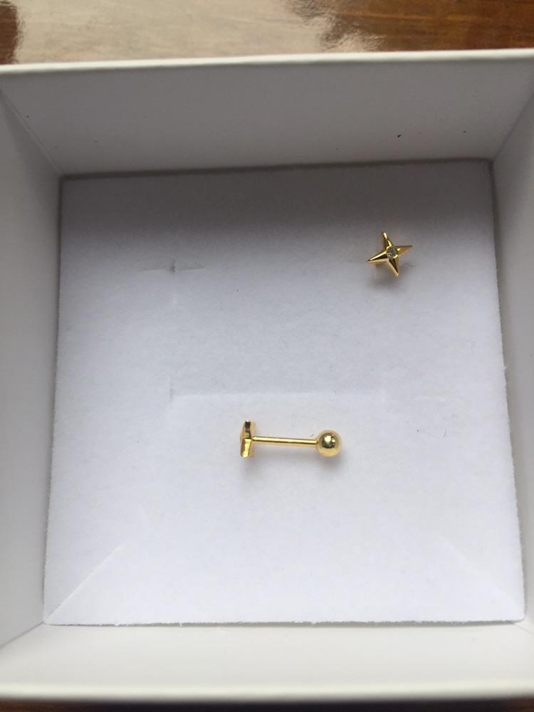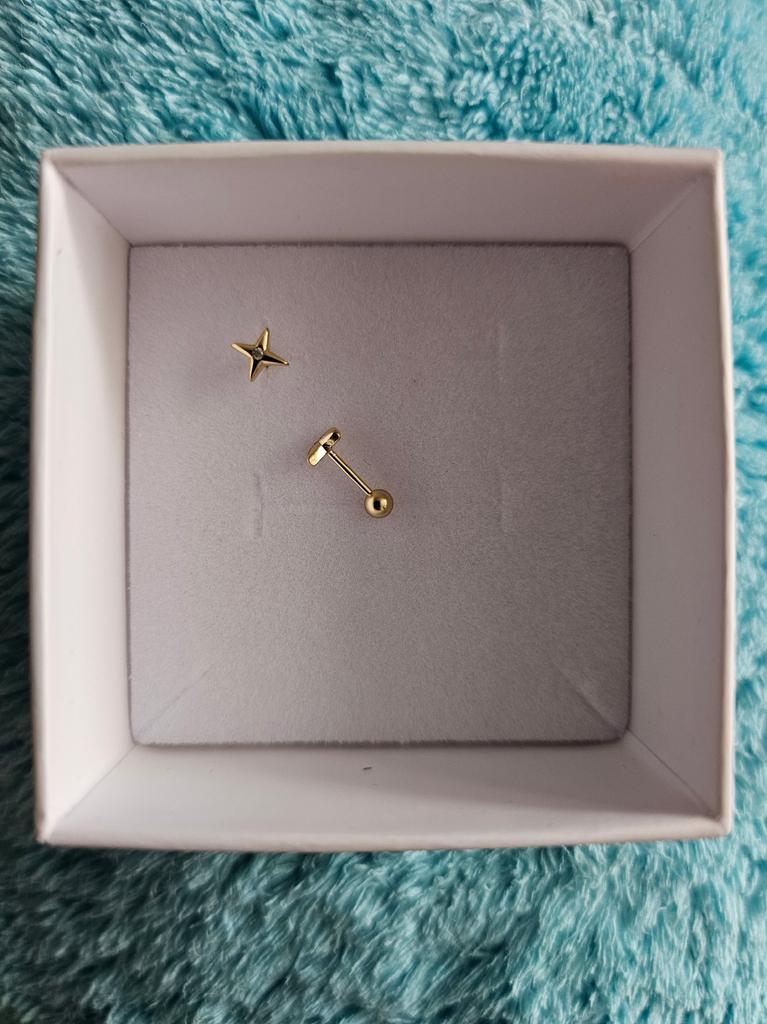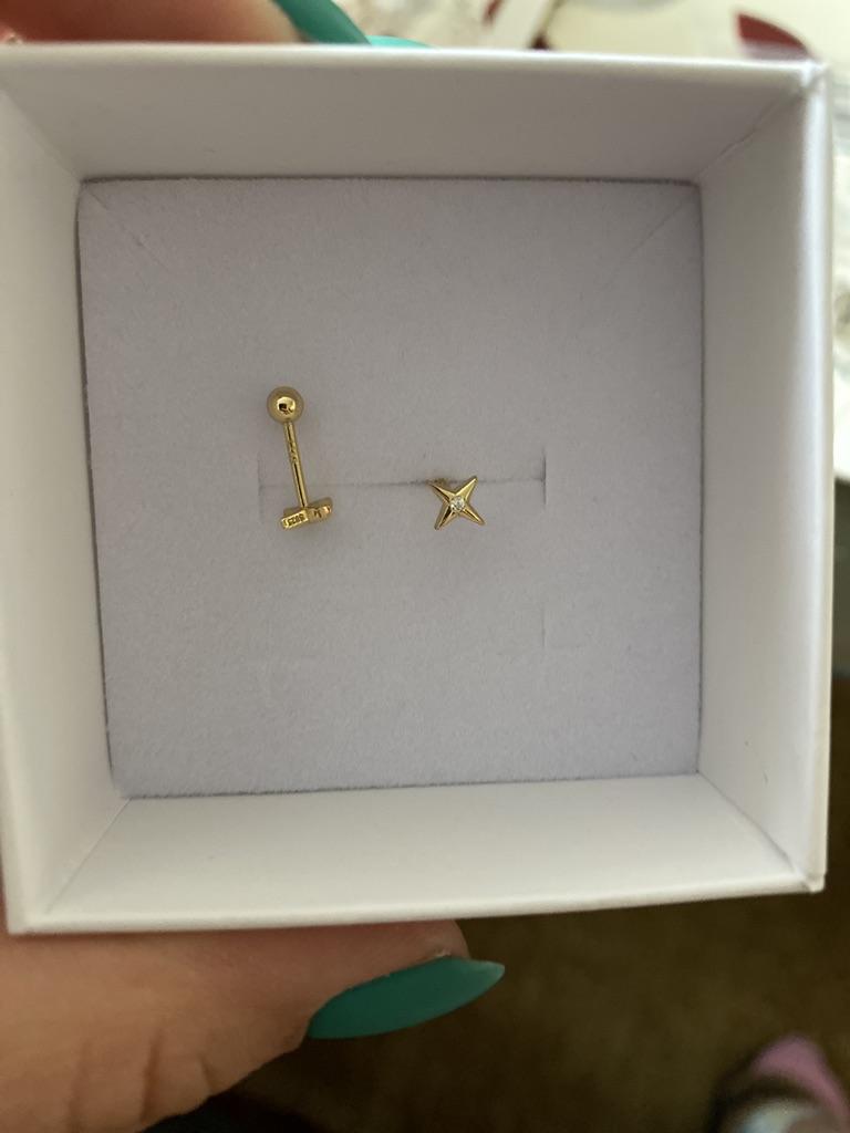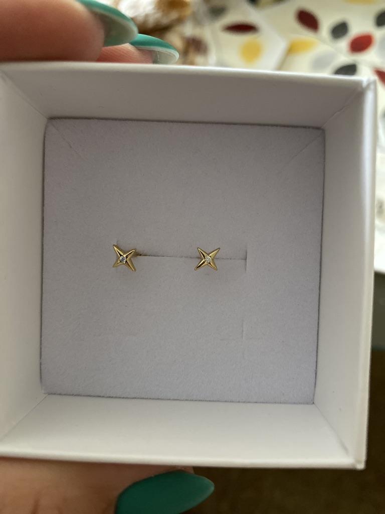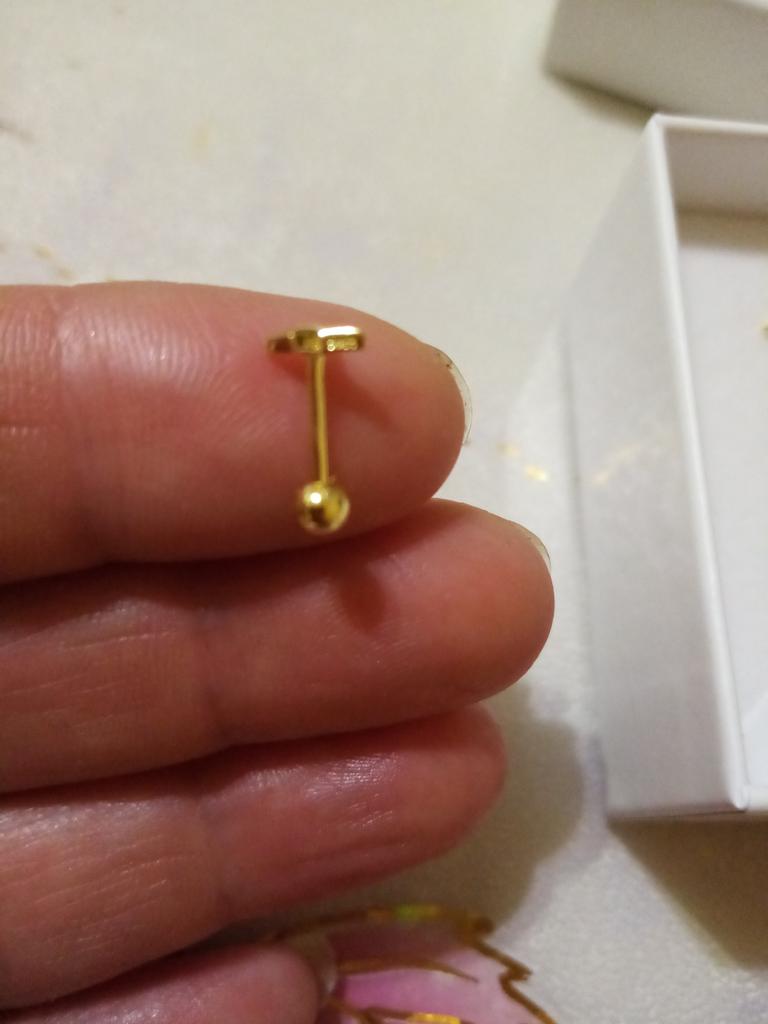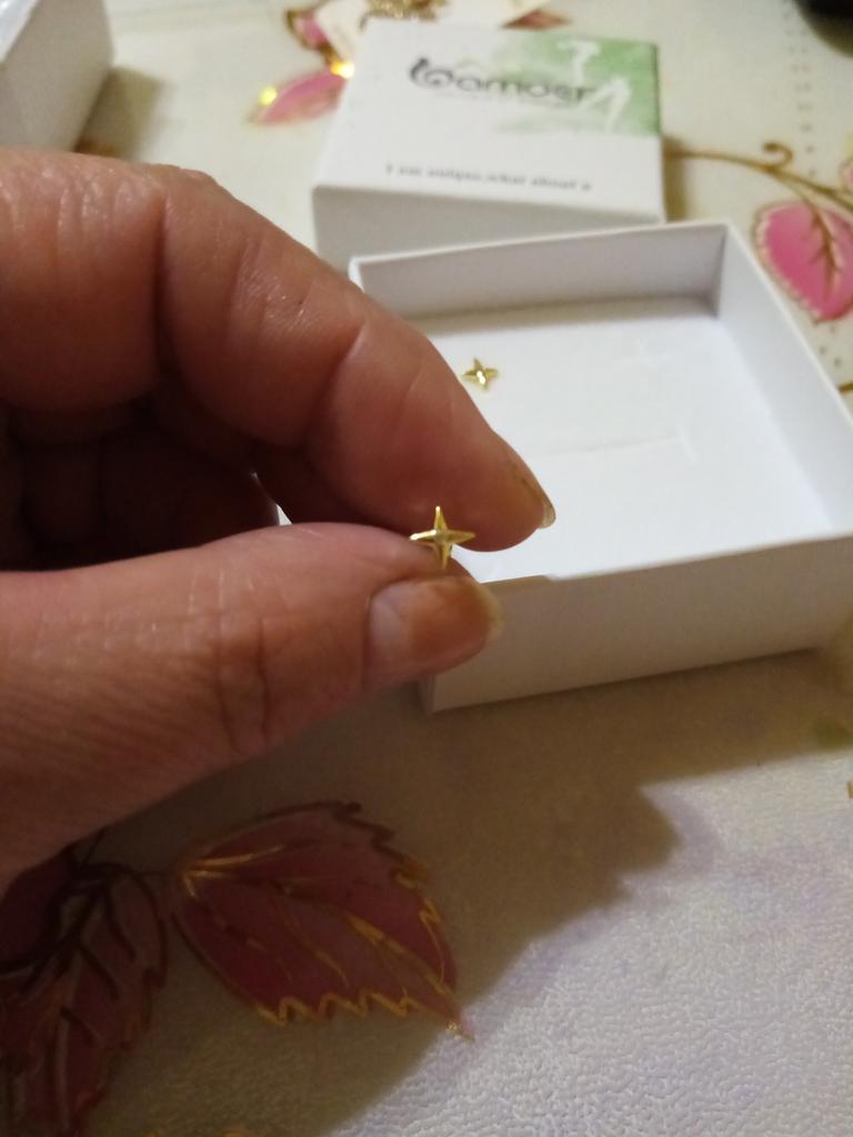 The earrings are miniature! I really liked them, but it is impossible to fasten without help. They are designed for a thick earlobe! The thread is only on the tip of the rod, those who have a thin earlobe will have to find a way out so that the earrings do not hang forward. For this, I remove a star!