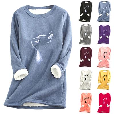 Women Thick Fleece Printing Sweatshirt Warm O-neck Underwear Top