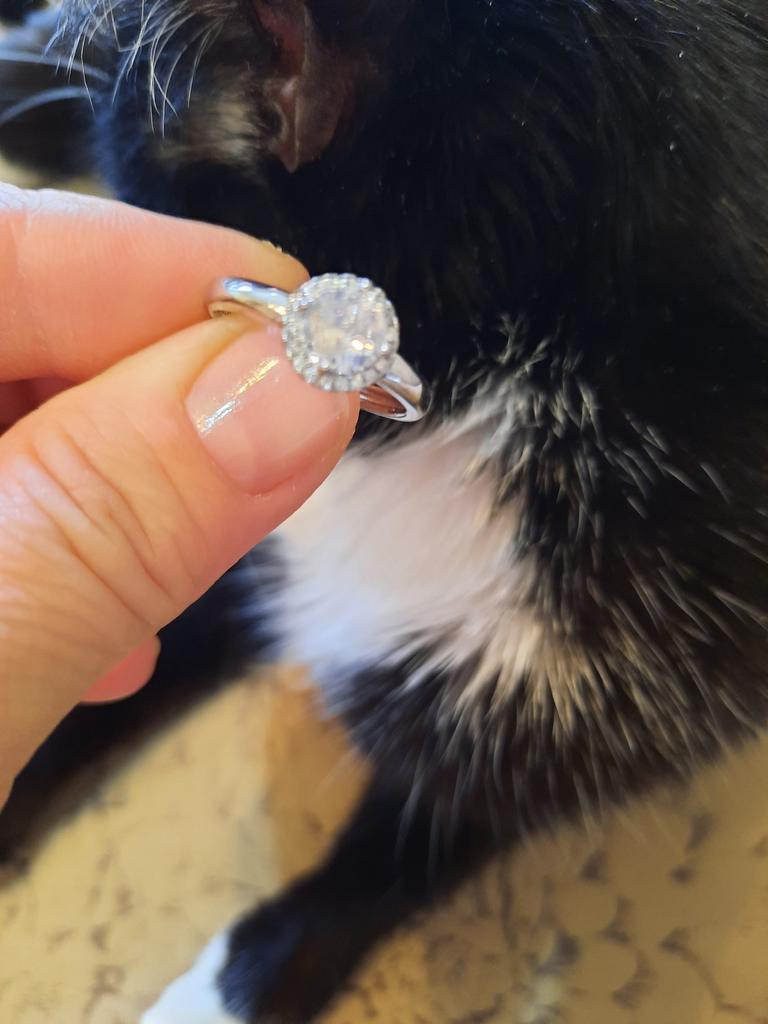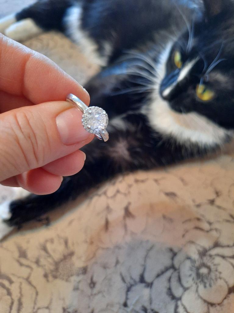 ⭐⭐⭐⭐⭐ Adjustable ring with round crystal - Lindon The order was delivered in 27 days as a registered mail and was well packed in a bubble envelope. In addition, the goods were packed in their own box. This is a beautiful, adjustable ring from the brand "Lindon". The ring is silver plated, although I couldn't figure out what material is underneath. I'm guessing copper. The workmanship is very high quality and pretty. There are many smaller artificial crystals set into the ring as well as a larger one. They are all sharp-edged and sparkle beautifully. The ring can be adjusted by means of a rail, into which the opposite part slips when the ring is pressed together. I am very satisfied with the product and the seller and would be happy to recommend both. ⭐ Adjustable ⭐ great value for money ⭐ silver plated