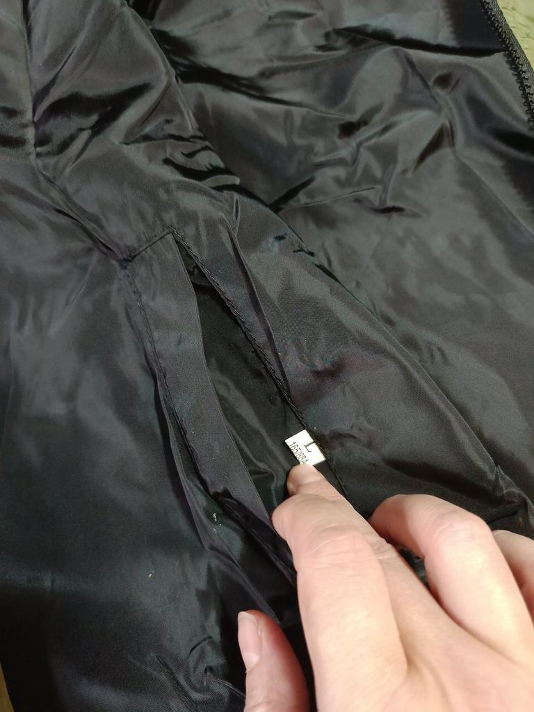 I took the size 46-48. Double-sided jacket. On the black side, pockets without zippers.