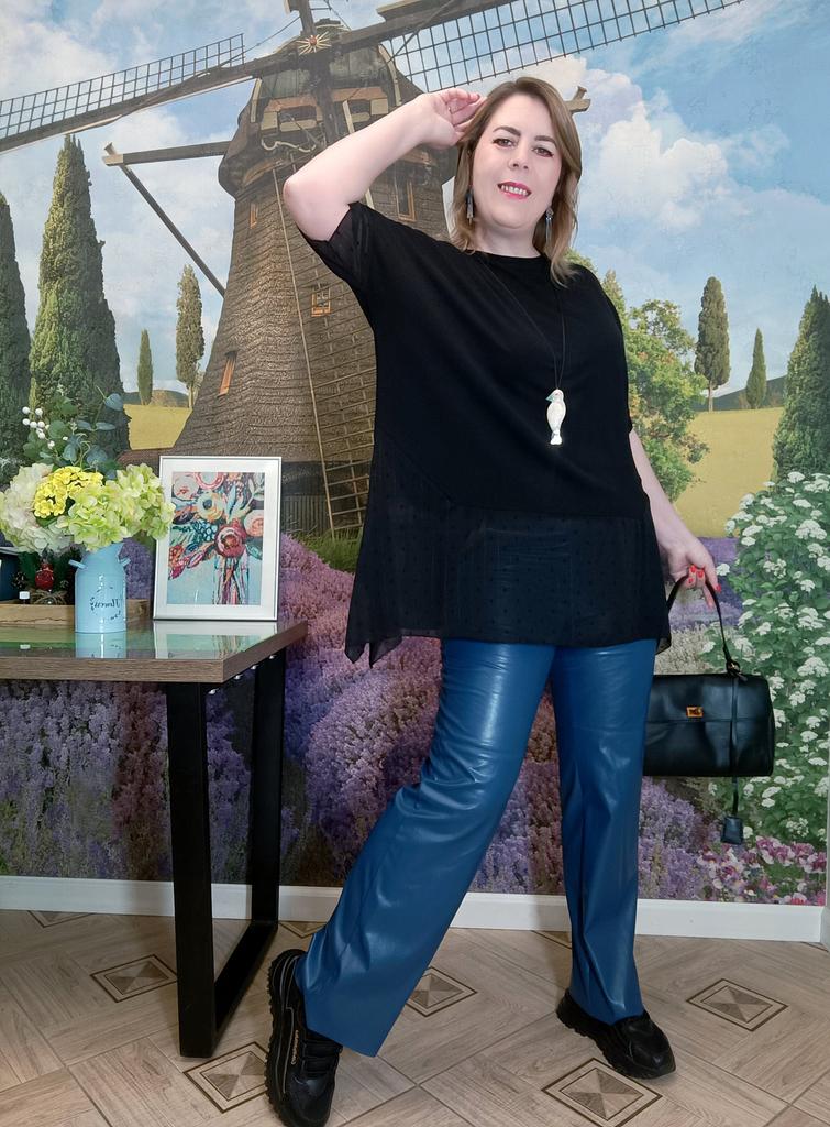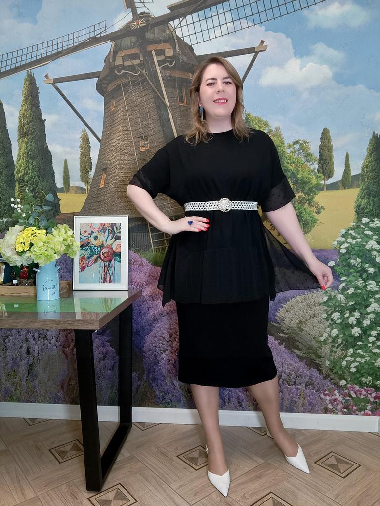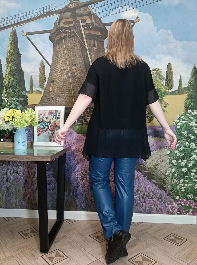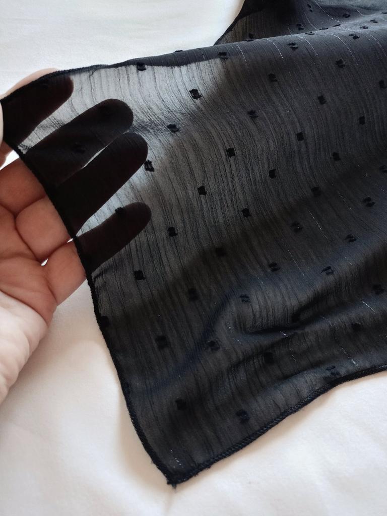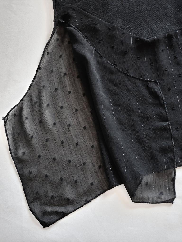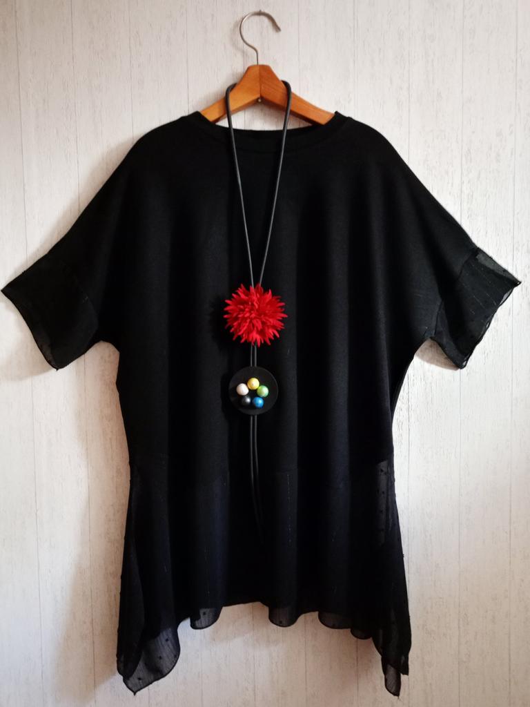 Black Blouse with Tulle Bottom – Elegance and Unique Details! ⭐⭐⭐⭐⭐ Design and Style: This blouse is a true style gem. The design combines a covered black fabric top with a ruffled bottom and semi-transparent tulle sleeves with a "plumetis" (small polka dot) pattern. This detail makes it much more original than a classic black top, perfect for those who want a sophisticated look without sacrificing comfort.. Material and Comfort: The fabric is light and drapes softly on the body, without clinging. The tulle is soft and doesn't scratch, a fundamental detail for all-day comfort. It's the type of garment that makes you feel put-together immediately: just pair it with a pair of jeans (as in the photos) or elegant trousers for an impeccable result.. One Size Fits All: Being a one-size-fits-all, the fit is intentionally loose and "boxy". From the photos, you can see how the cut is flowing, which makes it suitable for different body types (from S to XL). The short sleeves with the sheer detail add a touch of lightness to the overall silhouette.. Final Judgment: Excellent value for money on Joom. It's a versatile garment suitable for both formal occasions and casual outings. Arrived within the expected timeframe and well-packaged. An purchase I would absolutely make again! ✨🖤