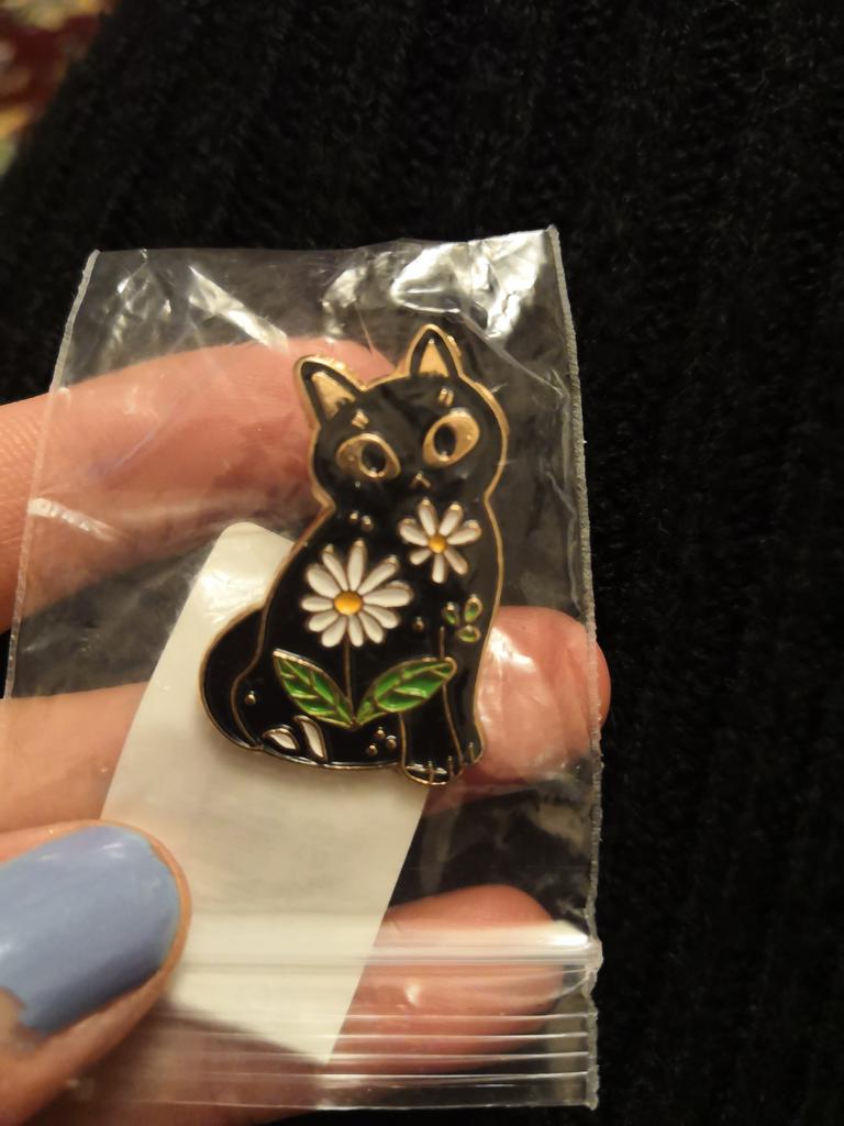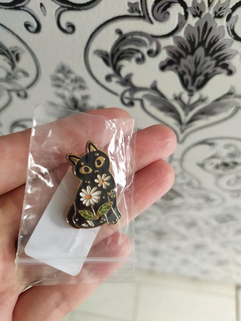 Packed very well, did not even feel the goods. Everything is careful. The product itself is just wonderful and very cute. As a lover of black cats, I really like this pin) It can be hard and visible in the photo, but I have it just like in the picture)
