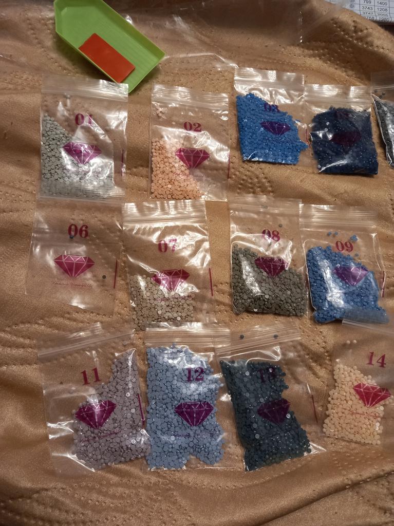 3.Find the corresponding diamond bag according to the numbers or letters, put the diamonds into the tray and shake.