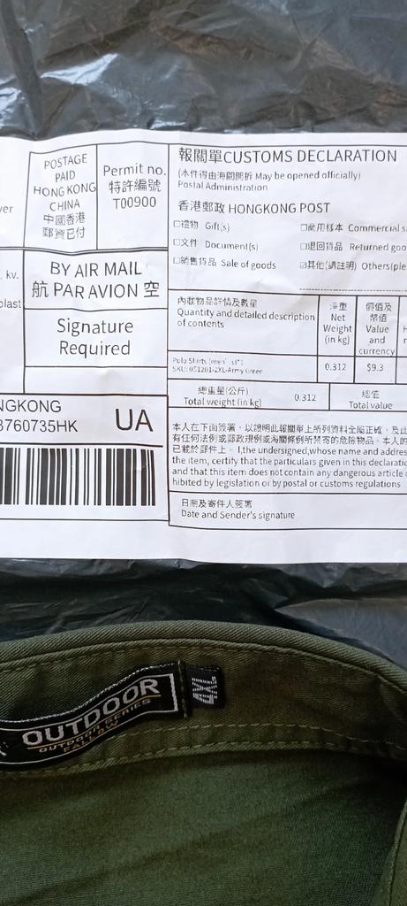 Benefits: This is the second shirt arrived in a different package, same impressions as the one in green. The package took 3 weeks and was tracked from shipment to home by courier. The shirt was in a resealable bag, it did not have any odors, on the reverse side there are some threads but nothing important, certainly as the other one needs a good ironing. The advice is the same: measure yourself and take one size up because the shirt fits quite tight. Disadvantages: In fact I am happy with the order, perhaps the packaging could be better but considering that it came from China to Italy, however, it arrived in good condition. I take this opportunity to thank Joom and the seller and wish good purchases and good health to everyone.