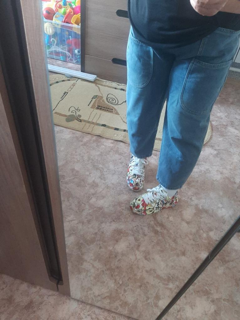 I put five stars and wrote "just right", because in principle they fit me, but the elastic stretches very badly and I pull them up for a long time, I have a height of 118 cm, but when I put them on, they are wonderful mom jeans , they are above my ankles (I am 1.69 cm tall), well - I will wear them, thanks Jumu!!!