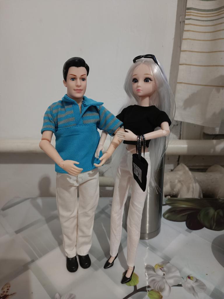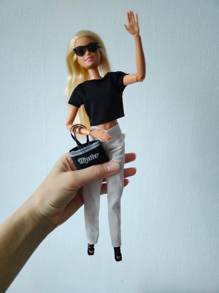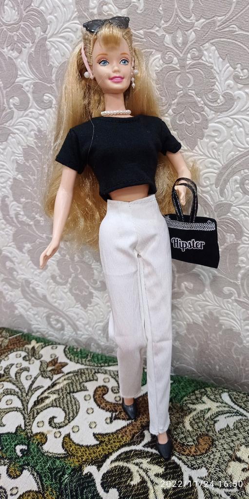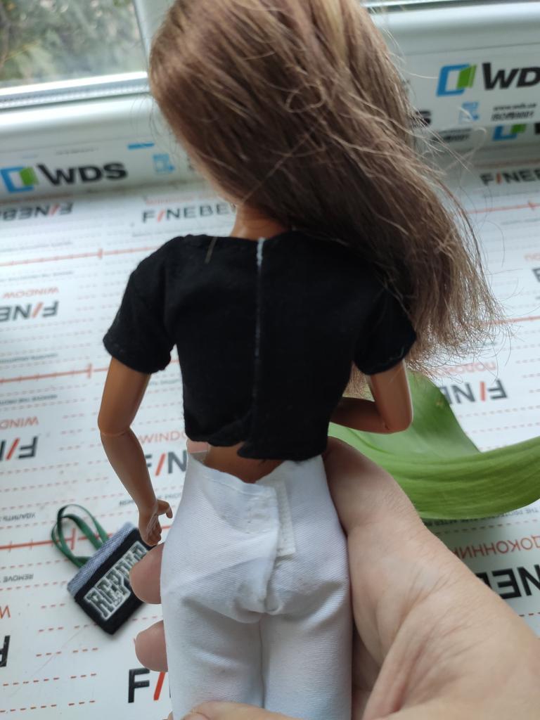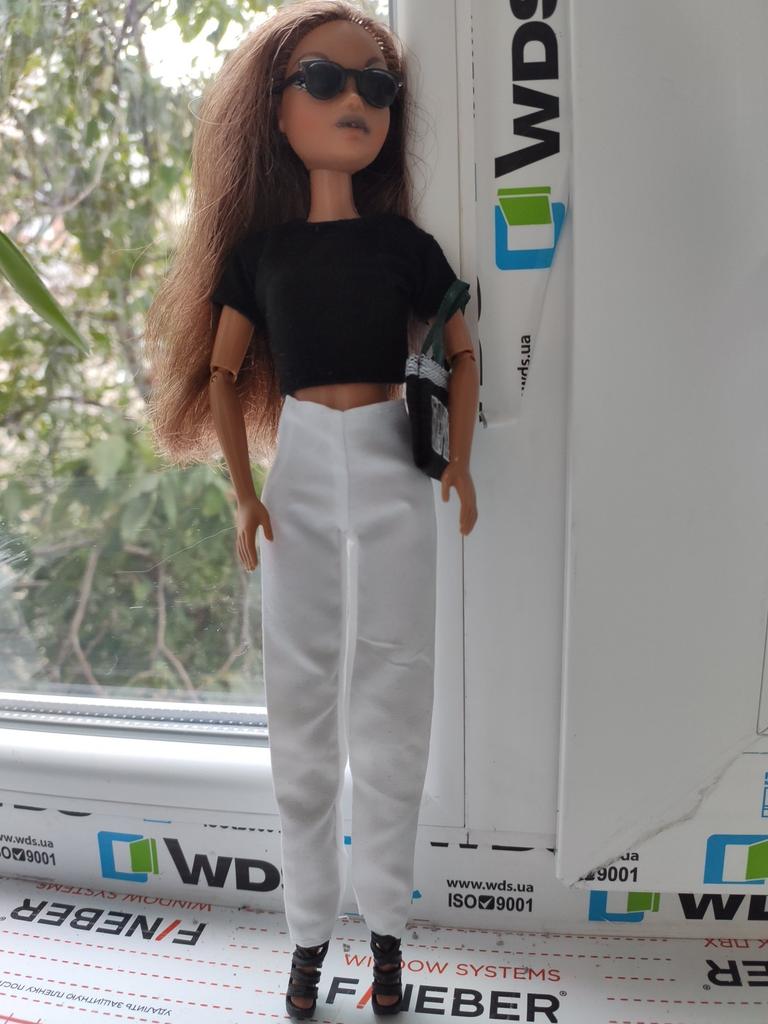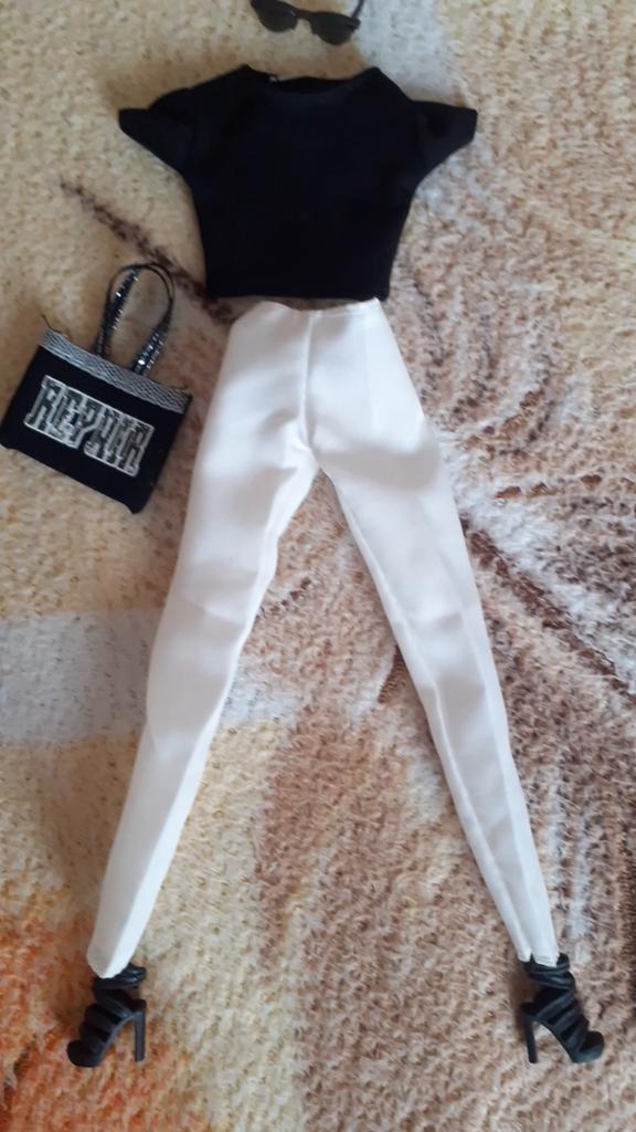 6 in 1 ... I have two dolls, one from perestroika times Veronica, lush hair, the other is a real Barbie with a rim ... The white suit suited our doll more, because she has more magnificent hips and shoes and a T-shirt fits better on Barbie sits but the clasp hangs from the back is not visible and the seams are very visible in her