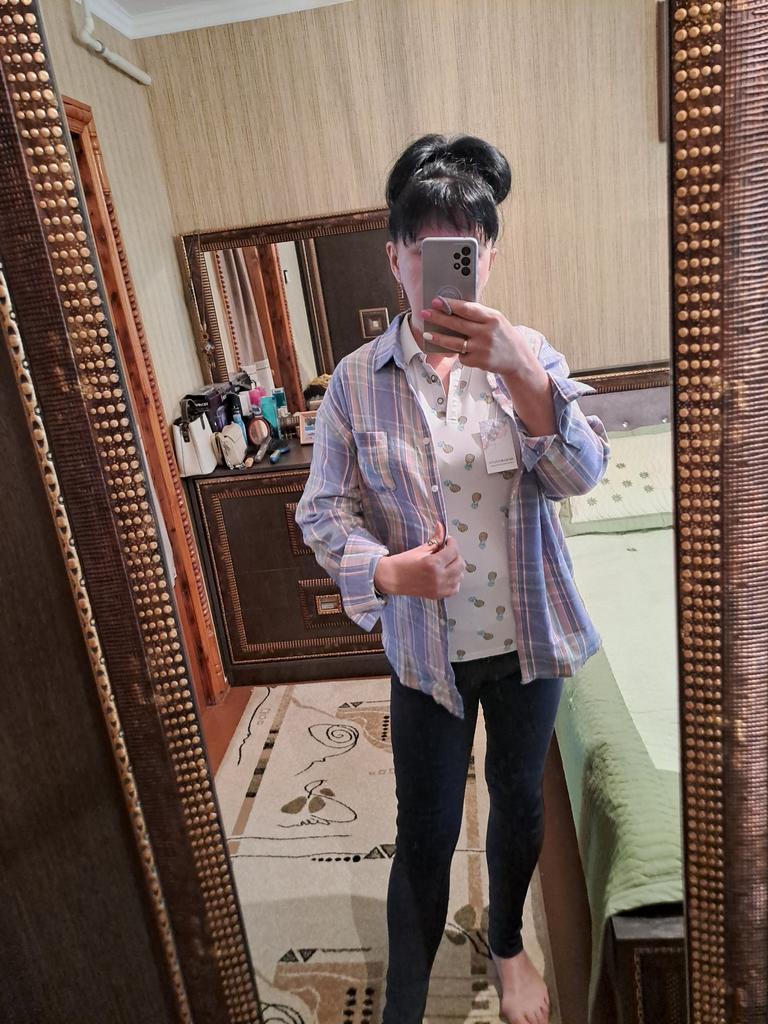 The fabric is pleasant to the touch, but the size does not correspond to the declared size. The size is not specified anywhere. Chest girth 106 instead of 118 The sleeves are too short The buttonholes are not cut