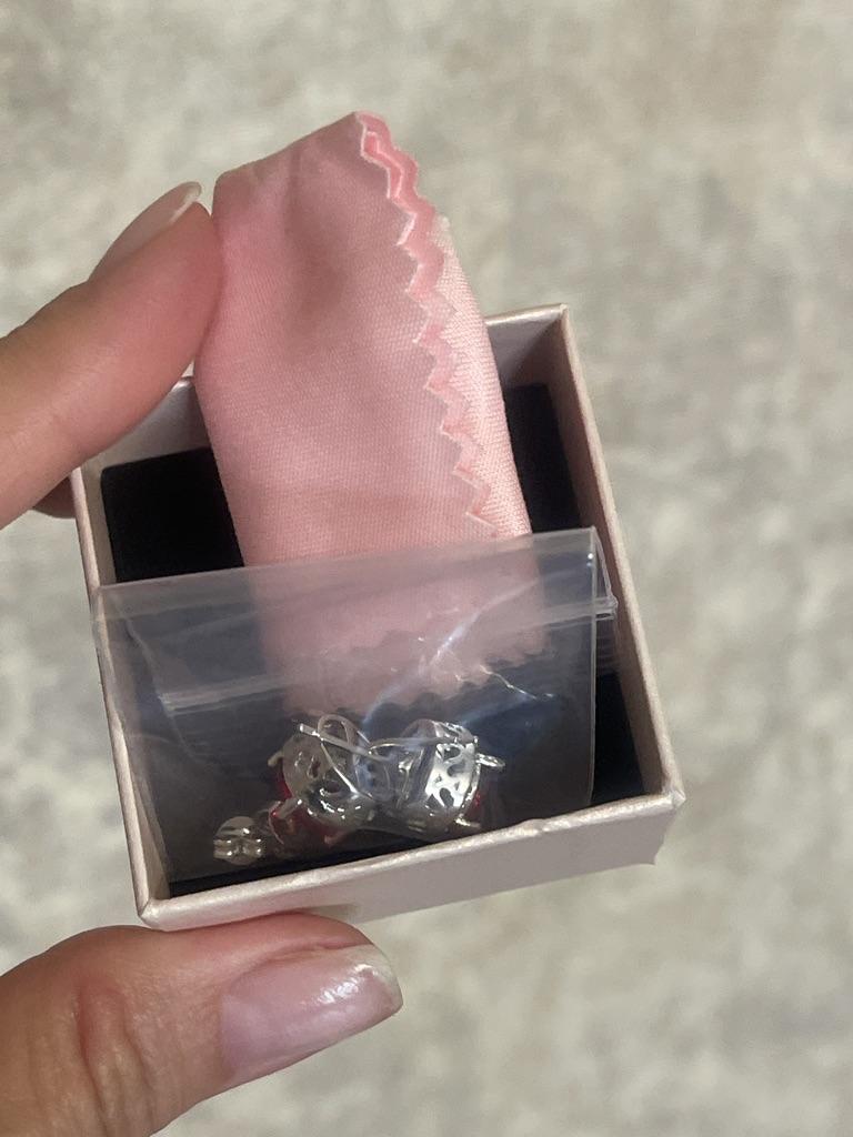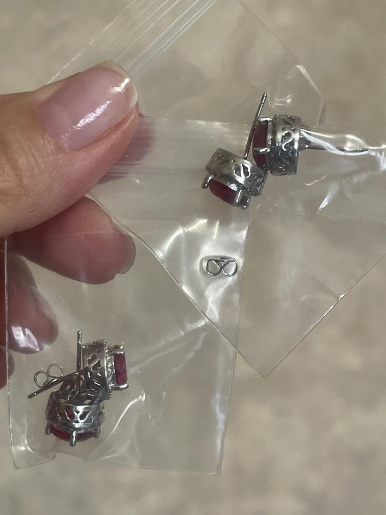 Correspond to the photo. The size is optimal for my small ears. A little more would already be hanging from the lobe. The locks included are classic metal ones. I immediately replaced them with plastic with silicone inside. This way the studs don’t hang down and I don’t tuck the earlobe.
