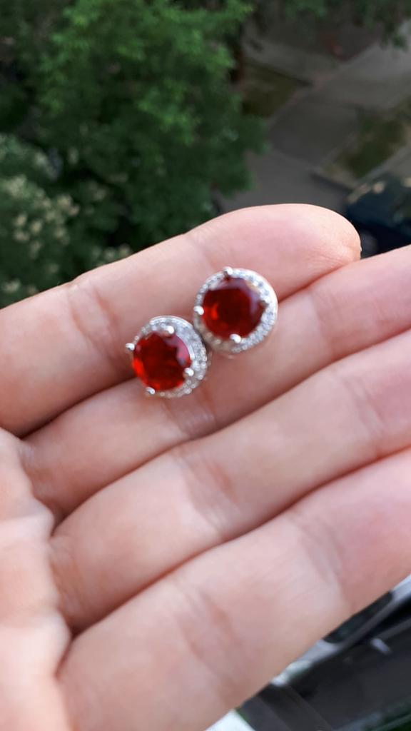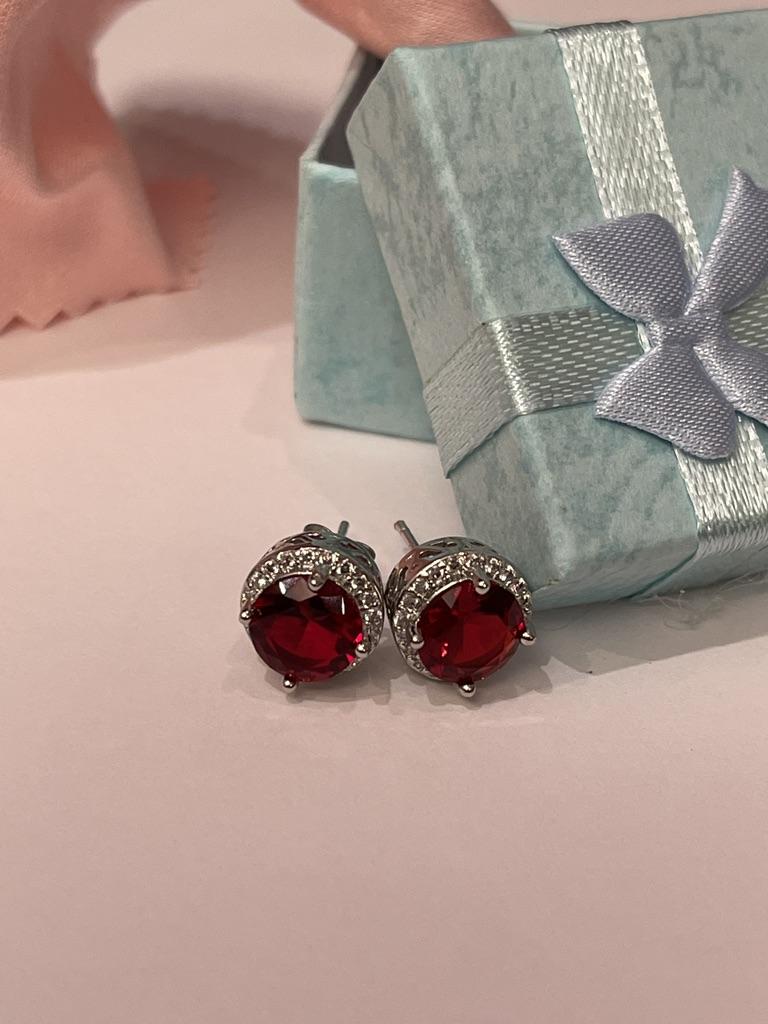 BELLA BOX Garnet Zircon Classic Earrings Round 6* 6mm Wedding Fine Jewelry Gift Accessories For Women